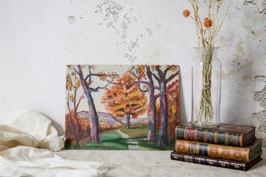 Original Autumn Landscape - Vintage Path Through Fall Foliage