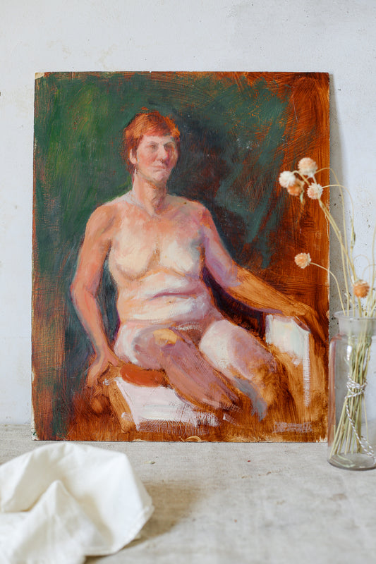 Original Boat on Water Landscape / Female Study Oil Painting on Board
