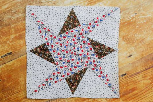 Vintage Brown and Red Starry Path Quilt Block, c1930
