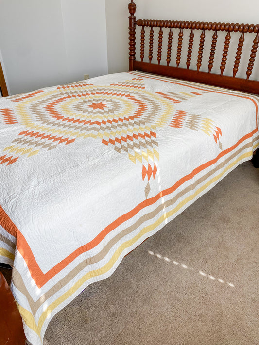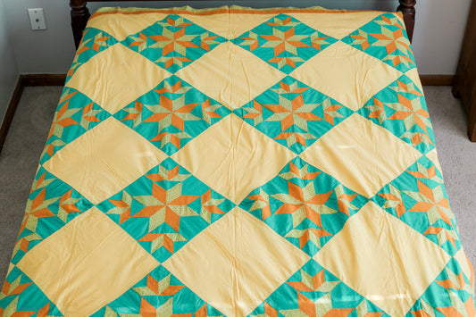 Vintage Blazing Star Orange & Teal Quilt TOP, c1930