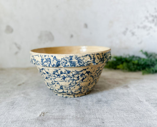 Vintage Blue Spongeware 8.5" Mixing Bowl