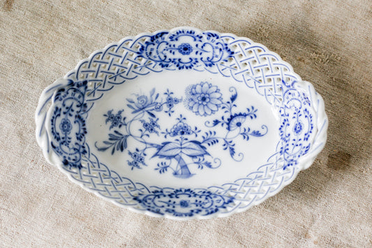 Vintage Stadt Meissen Blue Onion Open Lace Porcelain Oval Basket