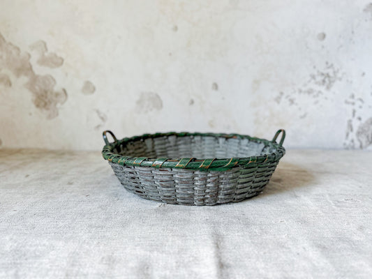 Vintage Split Wood Rectangular Woven Market Basket with Handle