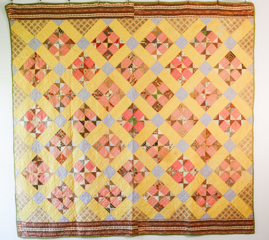 Antique Yellow Chrome Broken Dish Nine Patch Variation, c1880