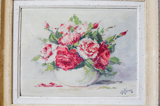 Still Life of Roses Original Signed Oil Painting, c1930