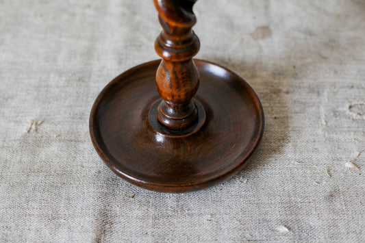 Vintage Carved Oak 12" Open Barley Twist Candle Holder