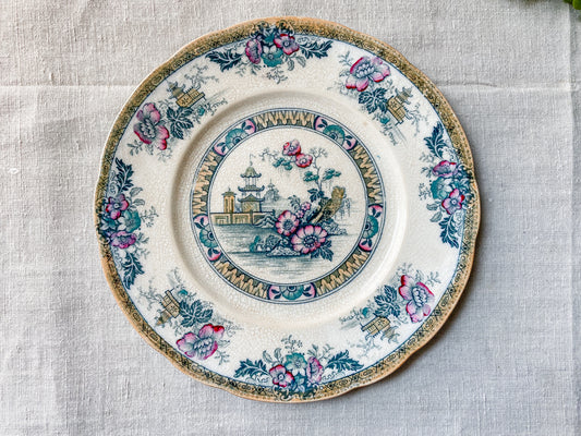 Antique Stained Crazed Polychrome "Yeddo" English Ironstone Plate