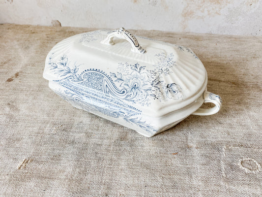 Antique “Avondale” Blue Transferware Ironstone Covered Vegetable Dish by W. & T. Adams