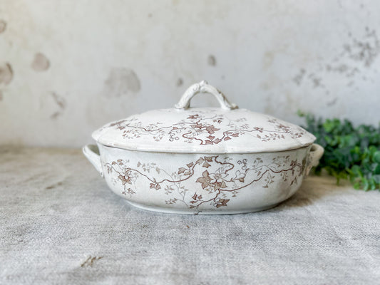 Antique Brown Transferware Ironstone Tureen - "Fairy" by Whittaker Heath & Co., c1895