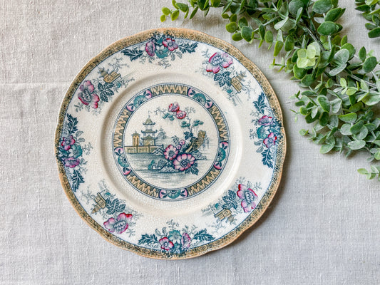 Antique Stained Crazed Polychrome "Yeddo" English Ironstone Plate