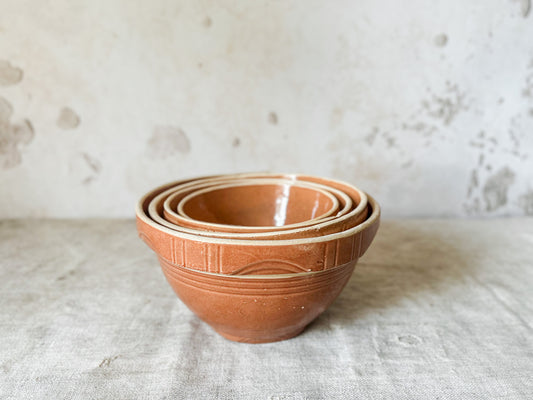 Watt Pottery Arcs Pumpkin Orange Stoneware Mixing Bowl Set of 4, c1940