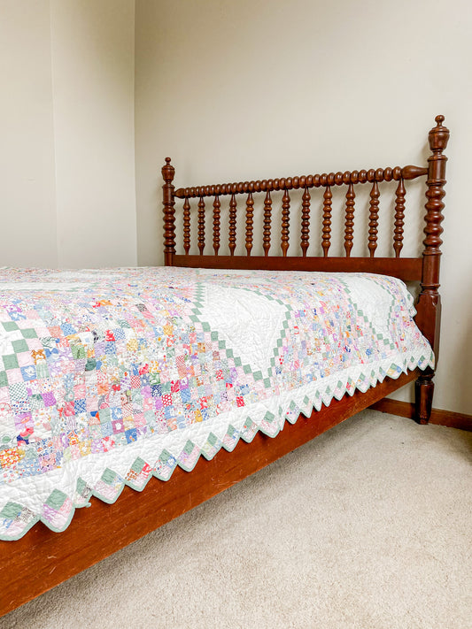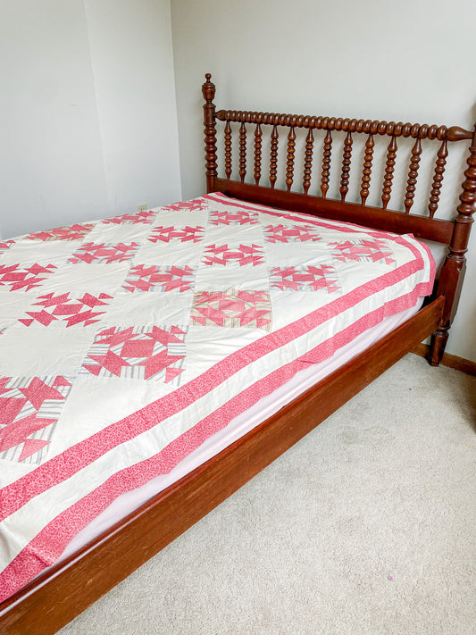 Set of Two Antique Matching Pink and White Broken Dishes Quilt TOPS, c1910
