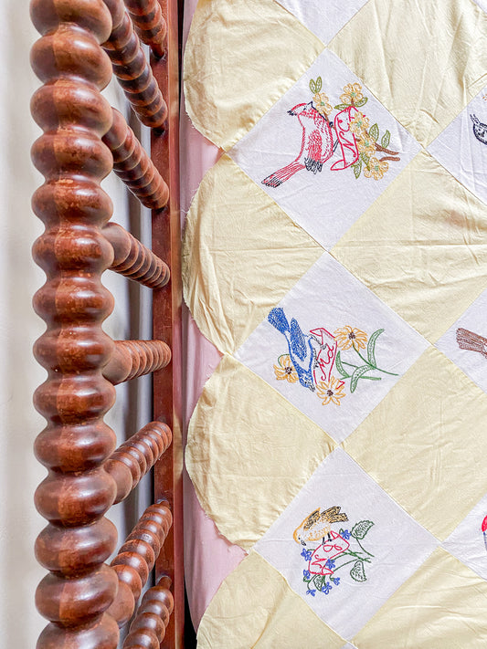 Vintage 48 State Bird & Flower Quilt TOP with Backing Fabric