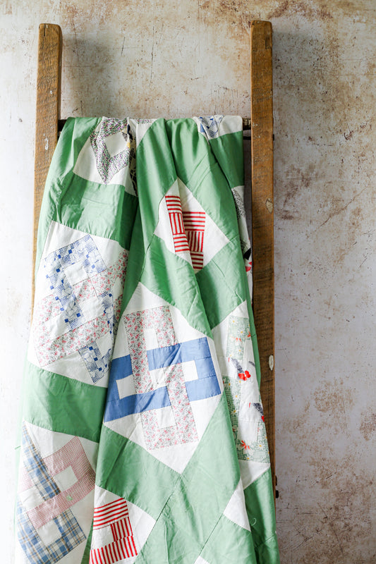 Vintage Pink and White Four Square Quilt TOP, c1930