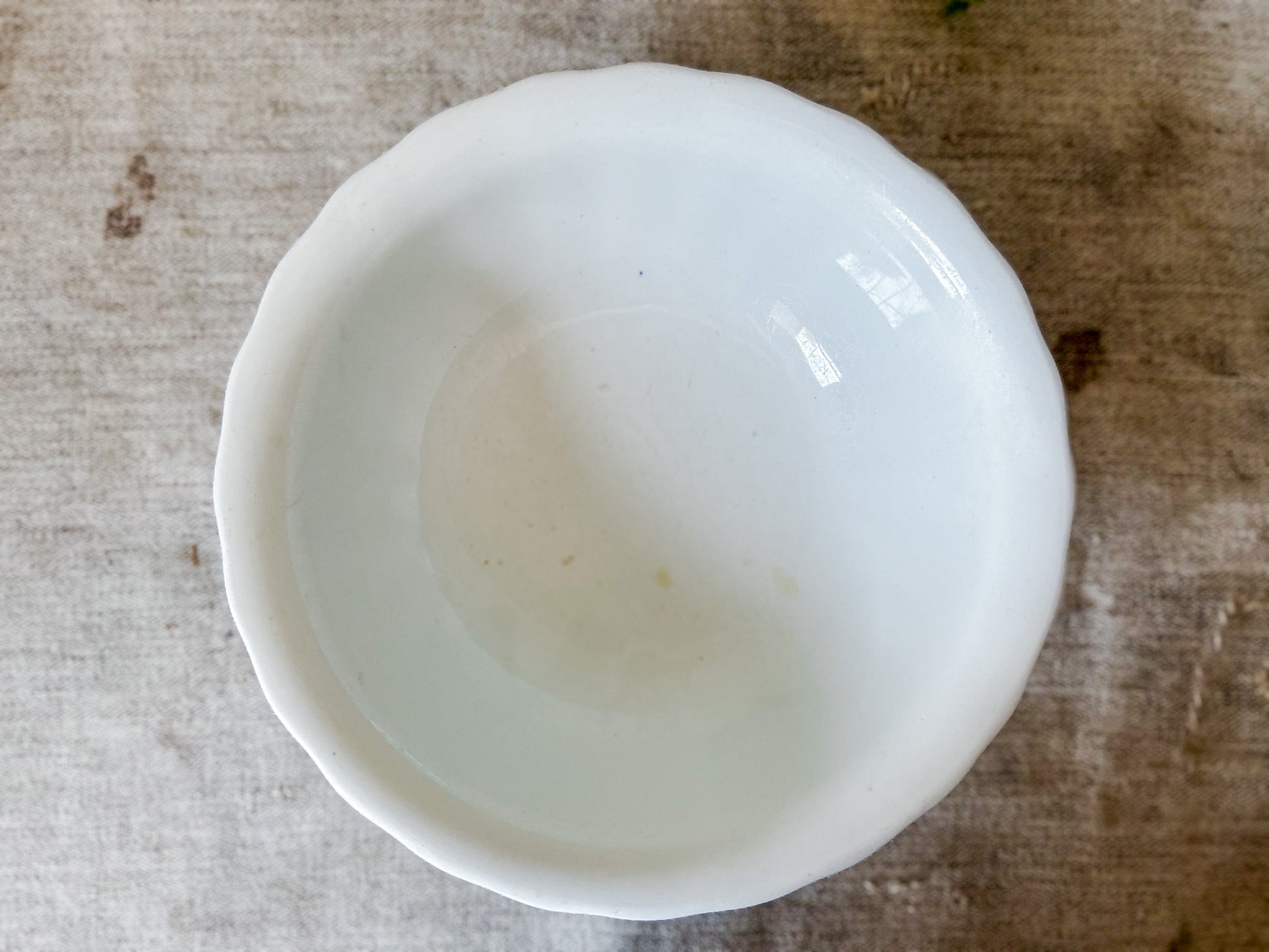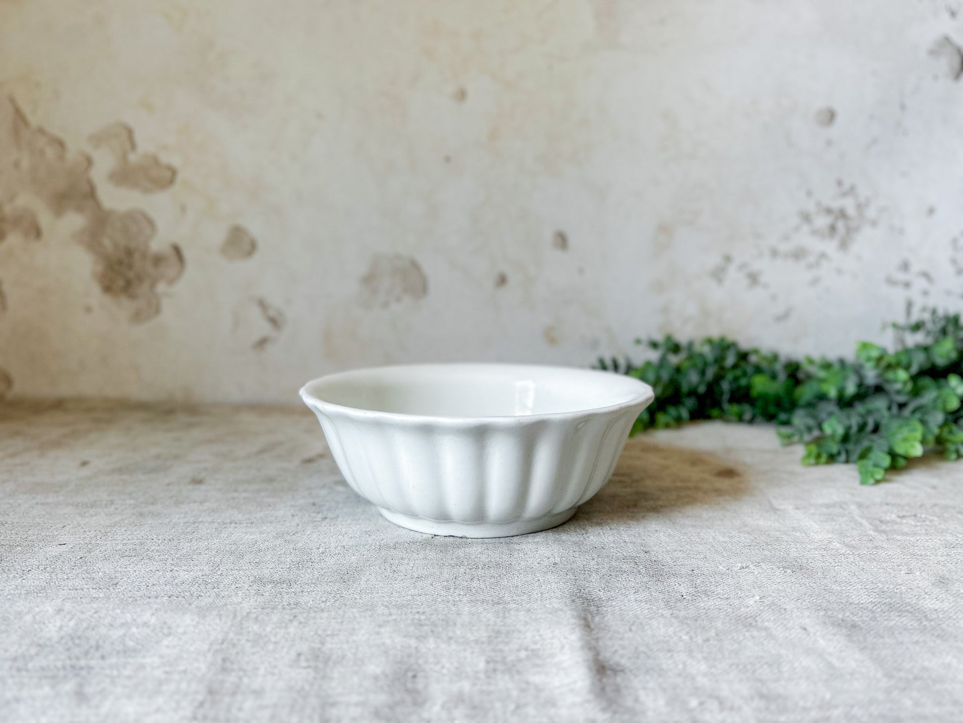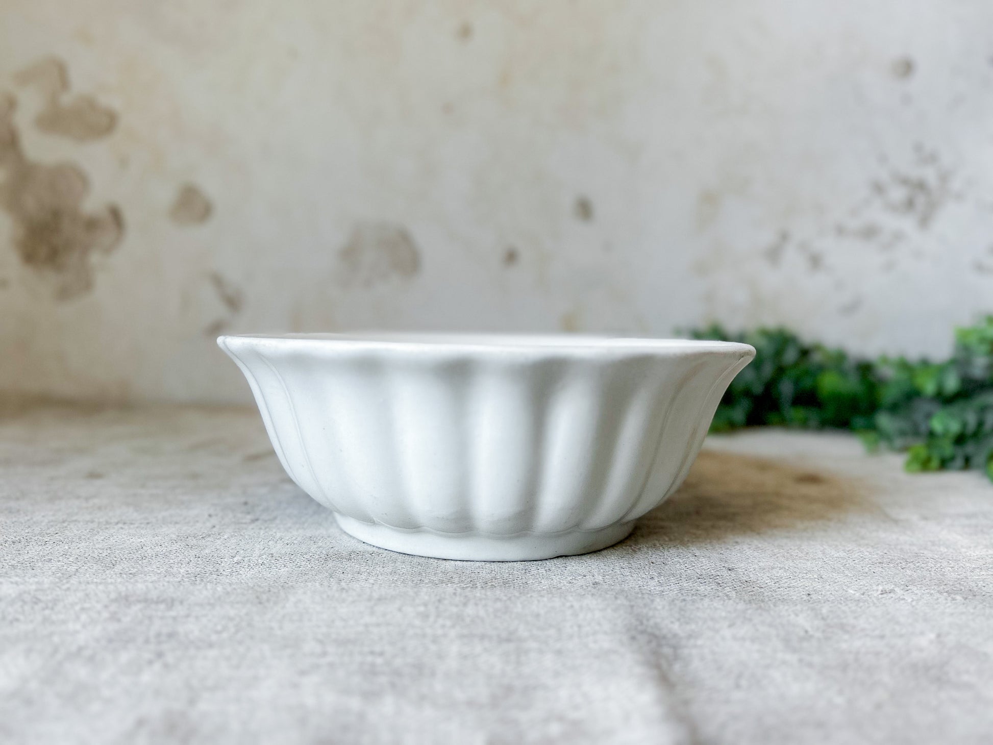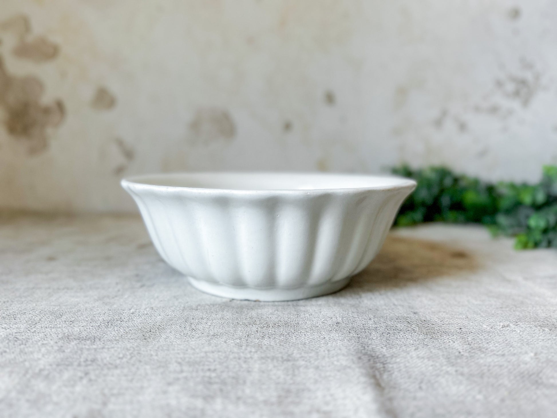 Available is a beautiful ironstone ladyfinger bowl, with fluted sides and flared rim. The base has a printed stamp with royal coat of arms and reads "Charles Meakin, Hanley, England." Overall great clean condition, with little discoloration and no crazing.