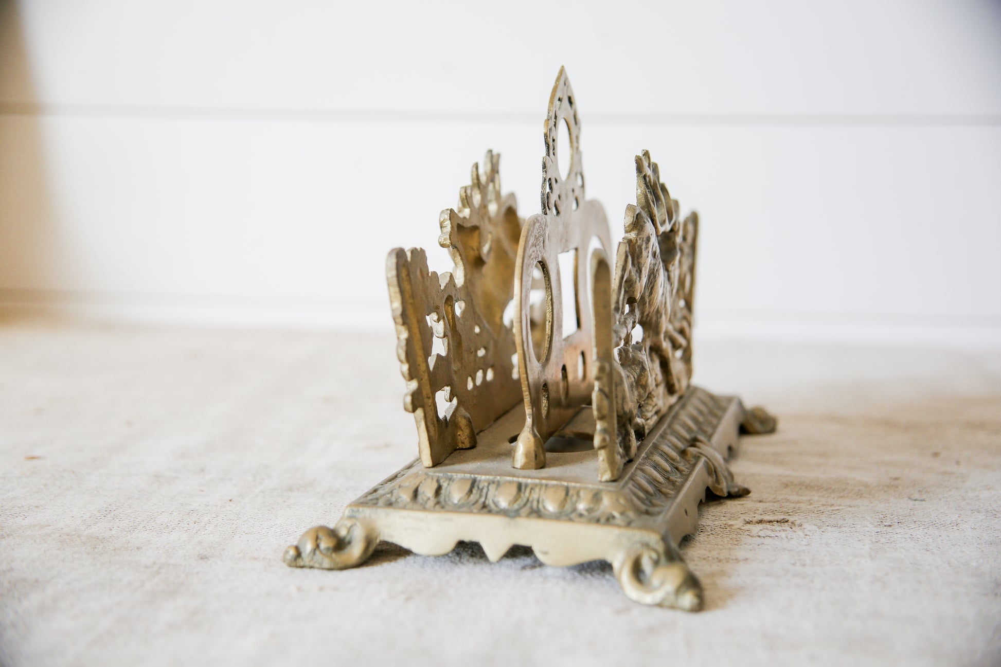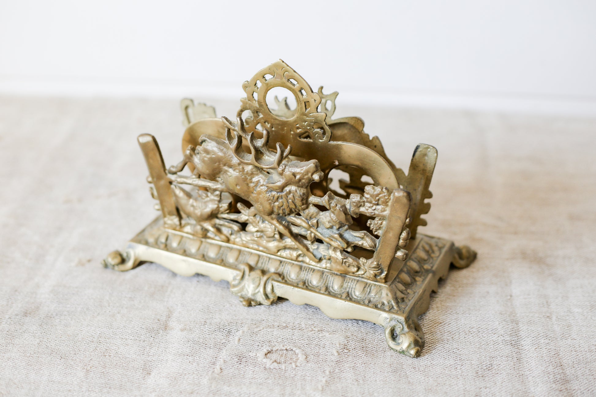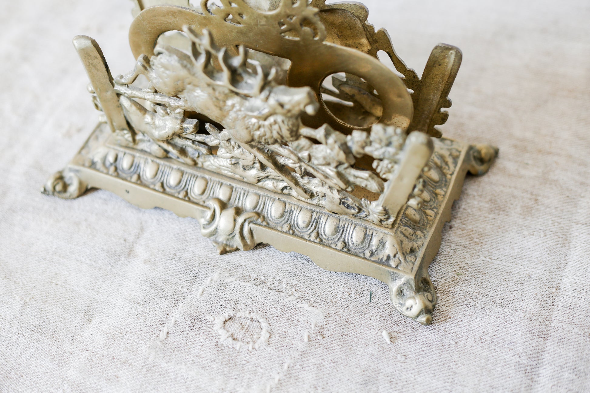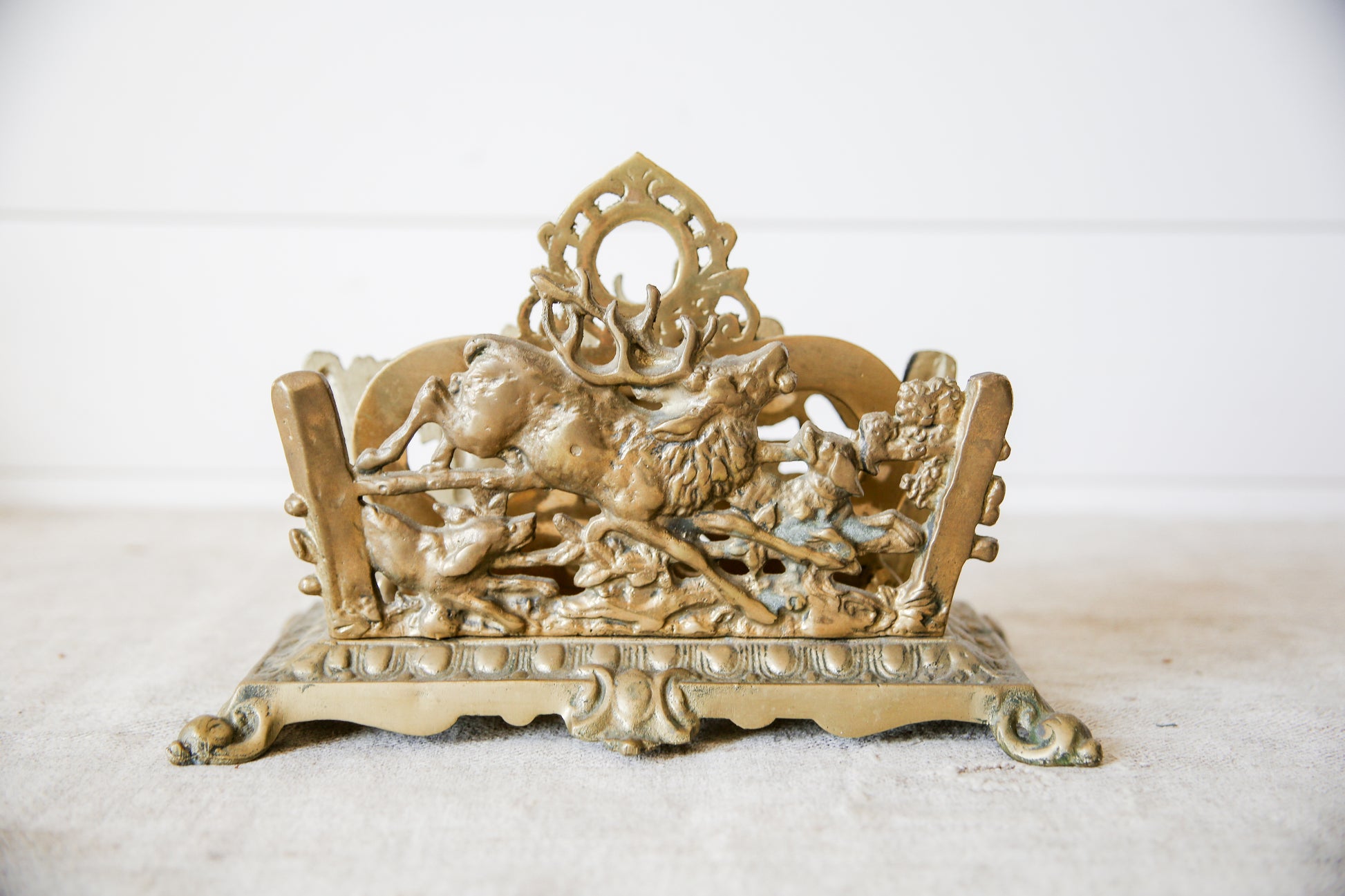 Antique Brass Hounds Hunting Stag Letter Holder by Bradley & Hubbard, c1885