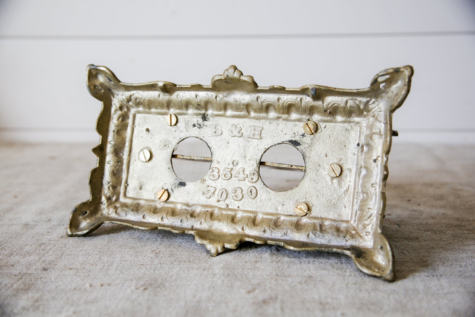 This intricately detailed piece is marked "B&H" on the bottom with serial numbers, indicating production by Bradley and Hubbard. B&H were prolific manufacturers of cast iron decorative pieces between 1850-1942. An identical piece to this is held in the Smithsonian collection and is dated c1885 (https://sway.cloud.microsoft/9RGzUYqsF2MjlNRk?ref=Link).