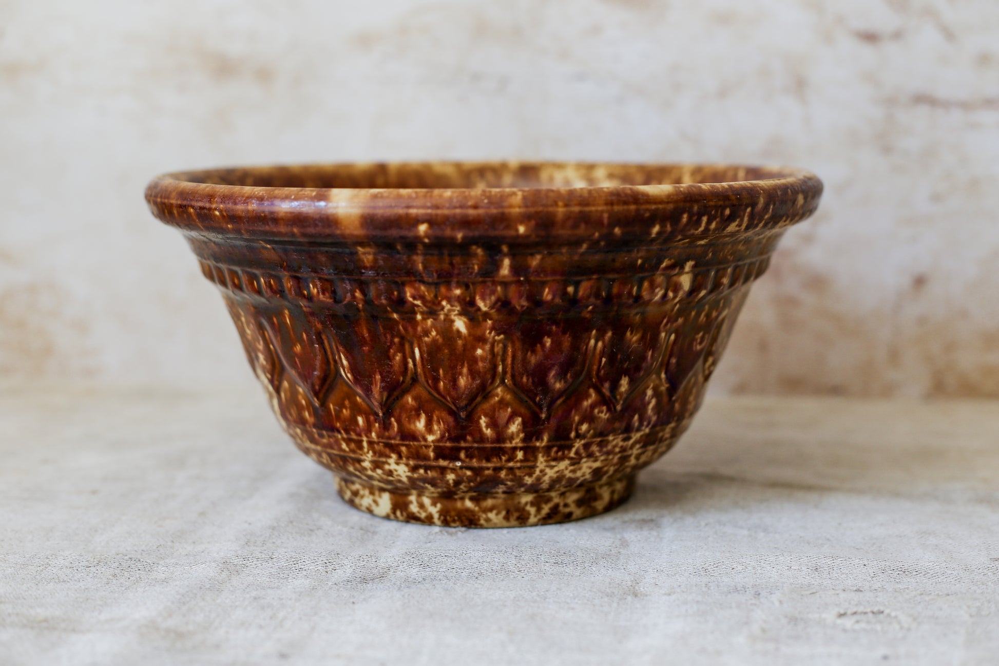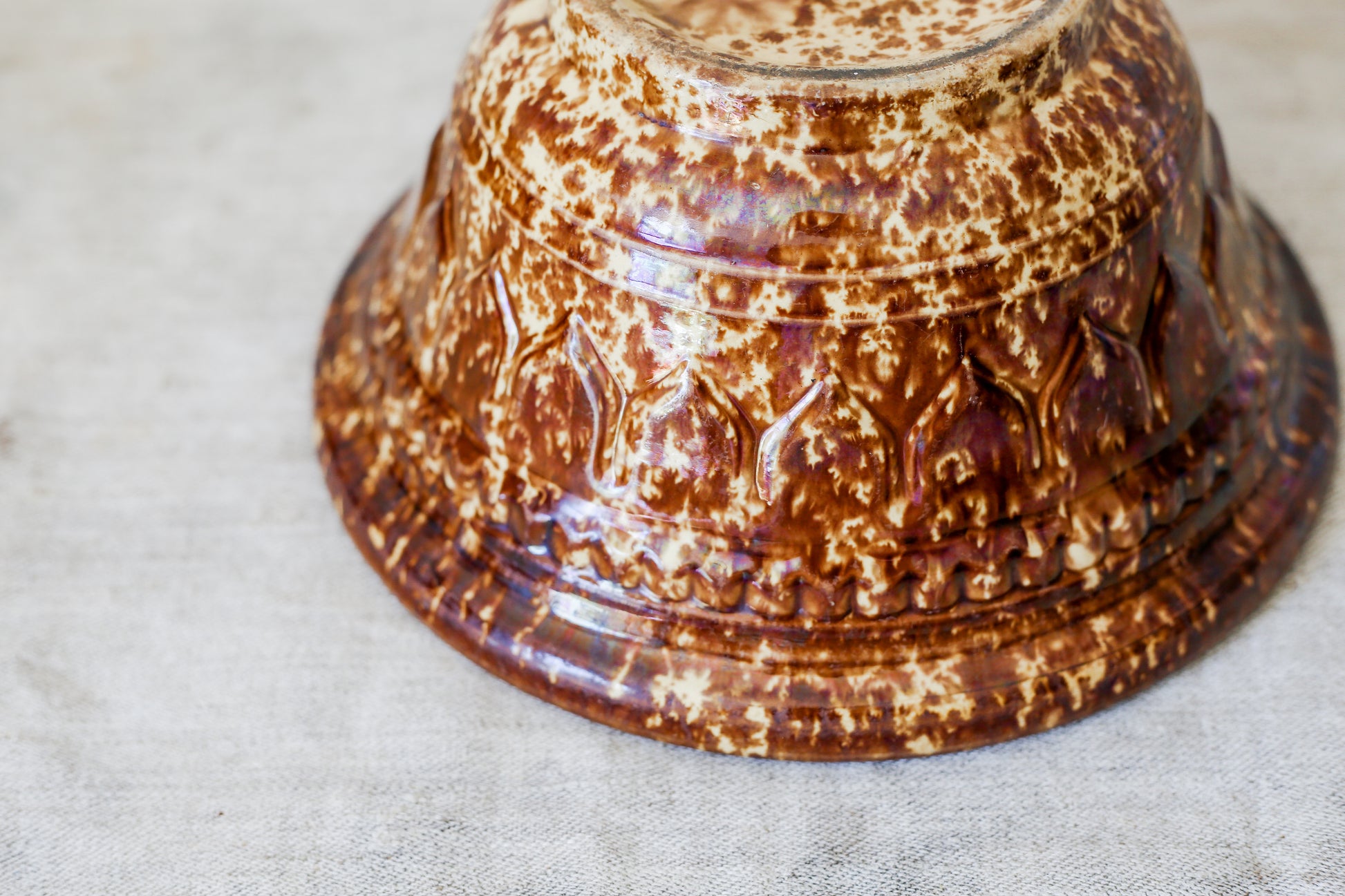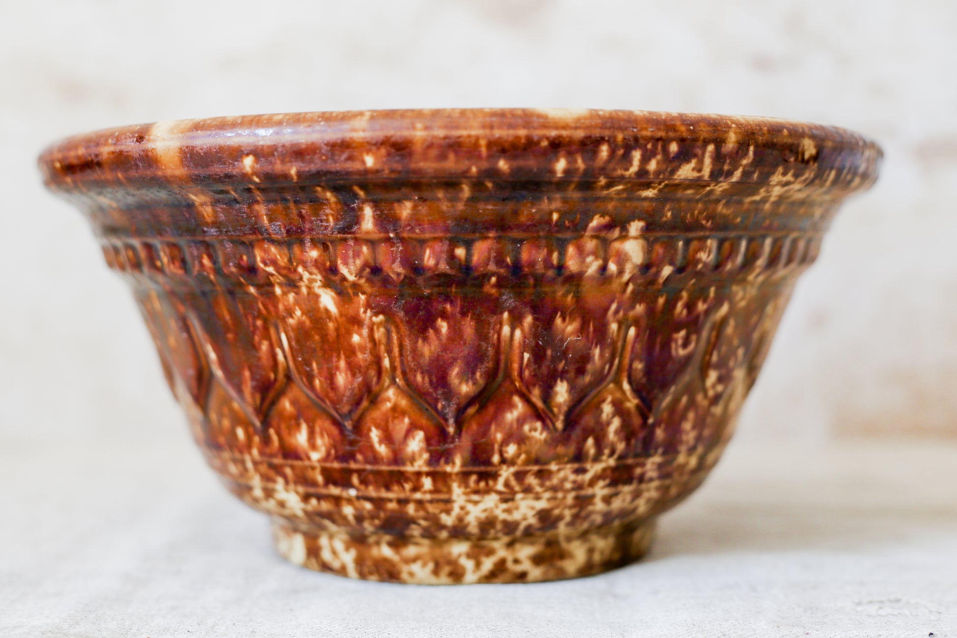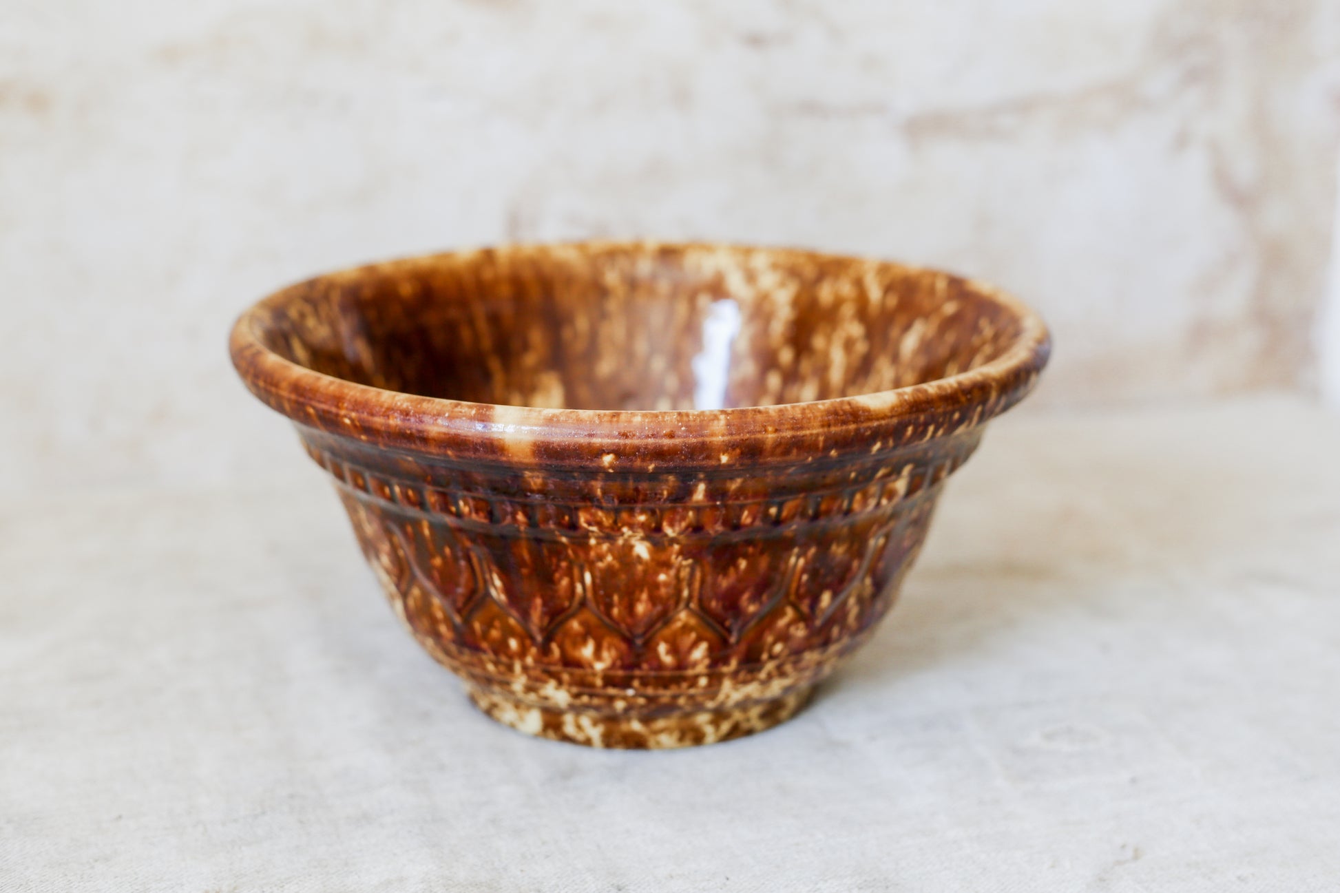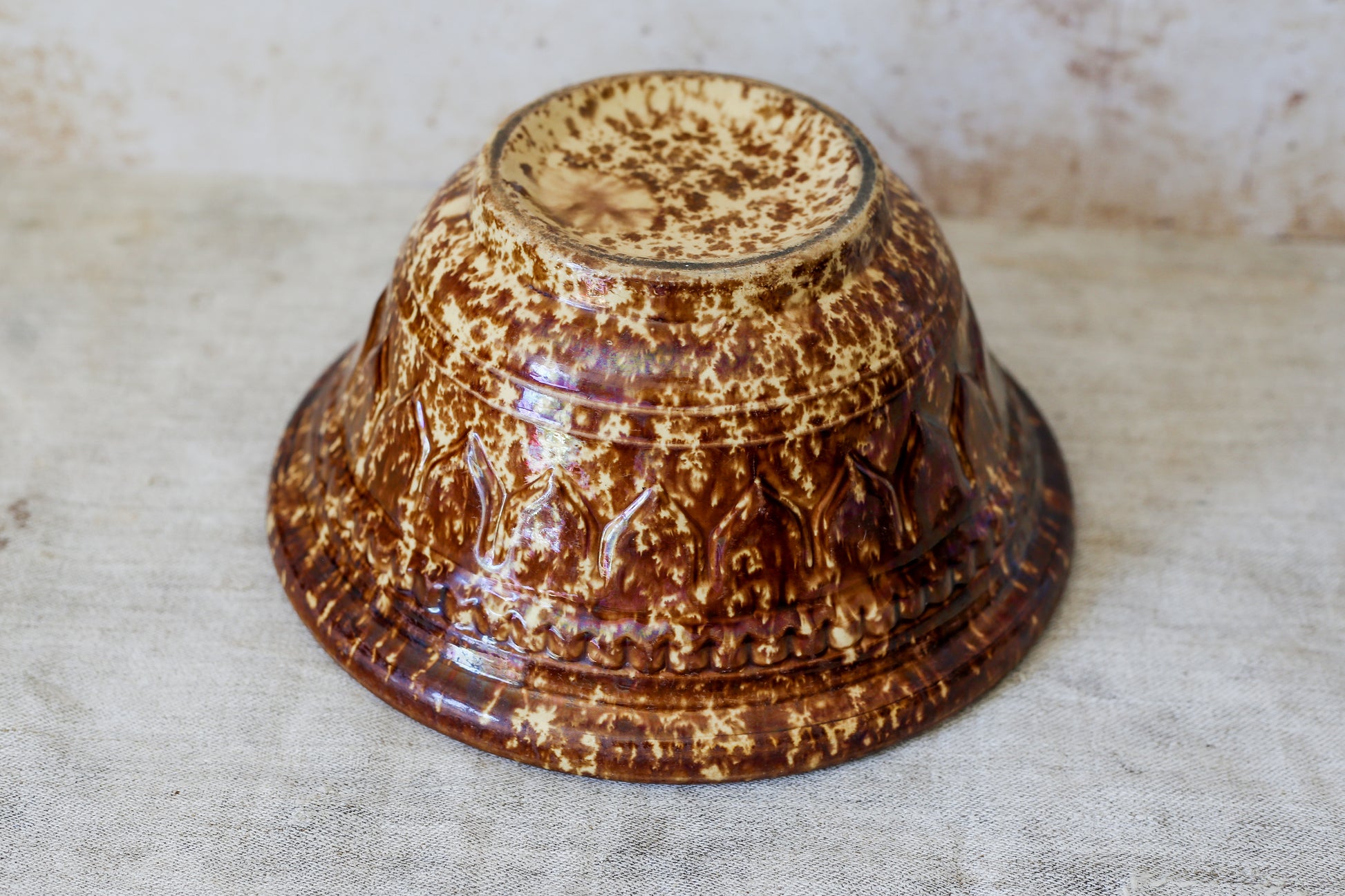 Antique Bennington Brown Splatterware 10" Mixing Bowl with Molded Sides