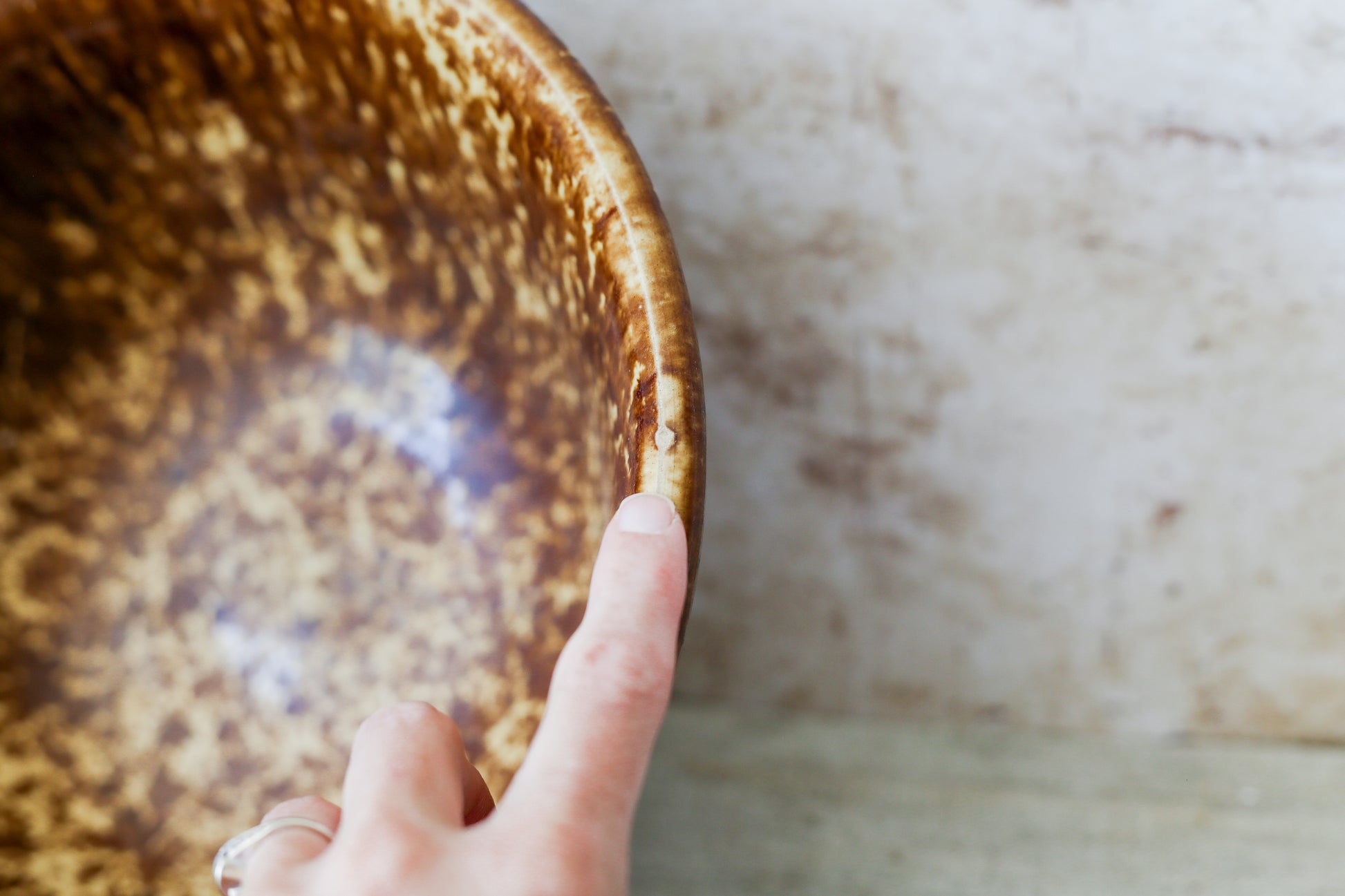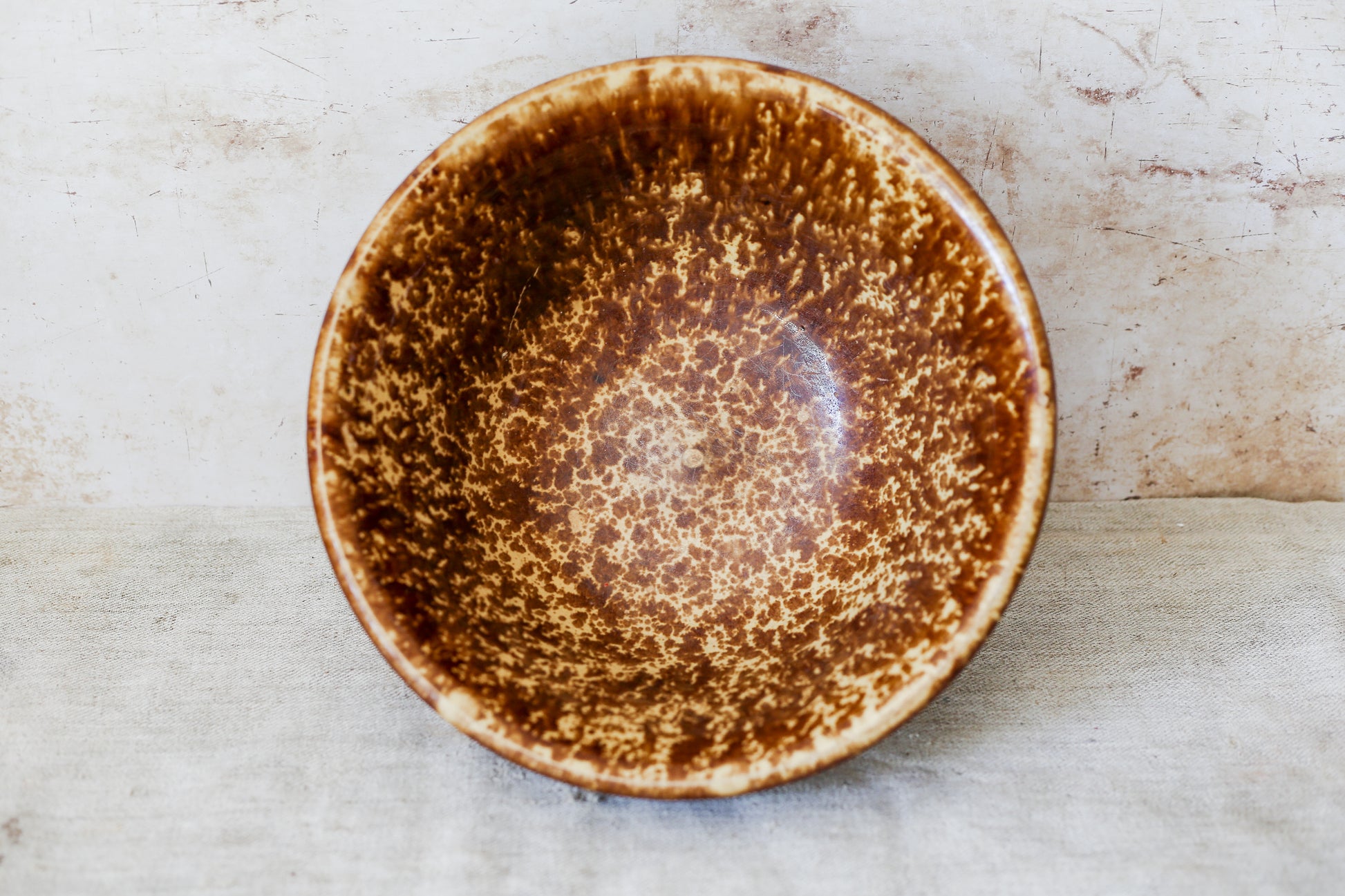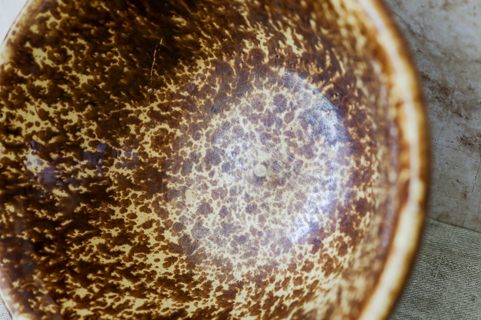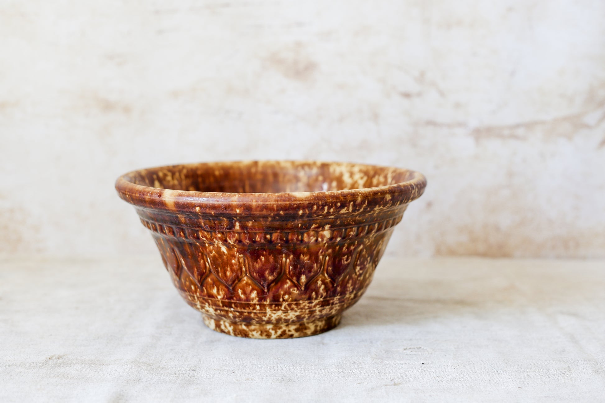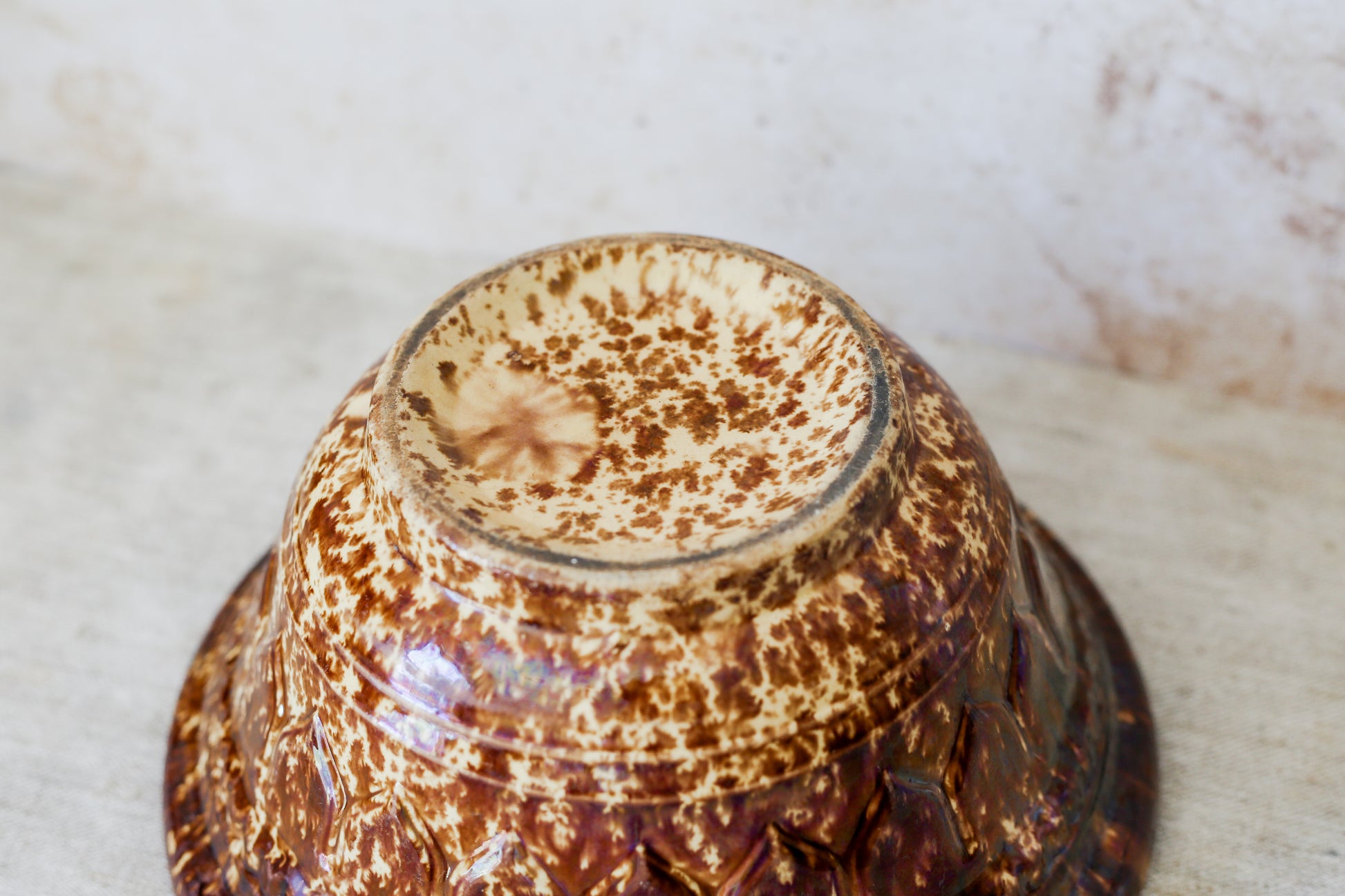 Antique Bennington Brown Splatterware 10" Mixing Bowl with Molded Sides