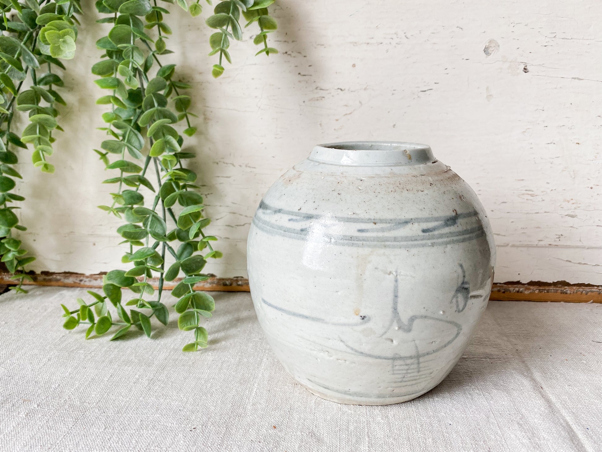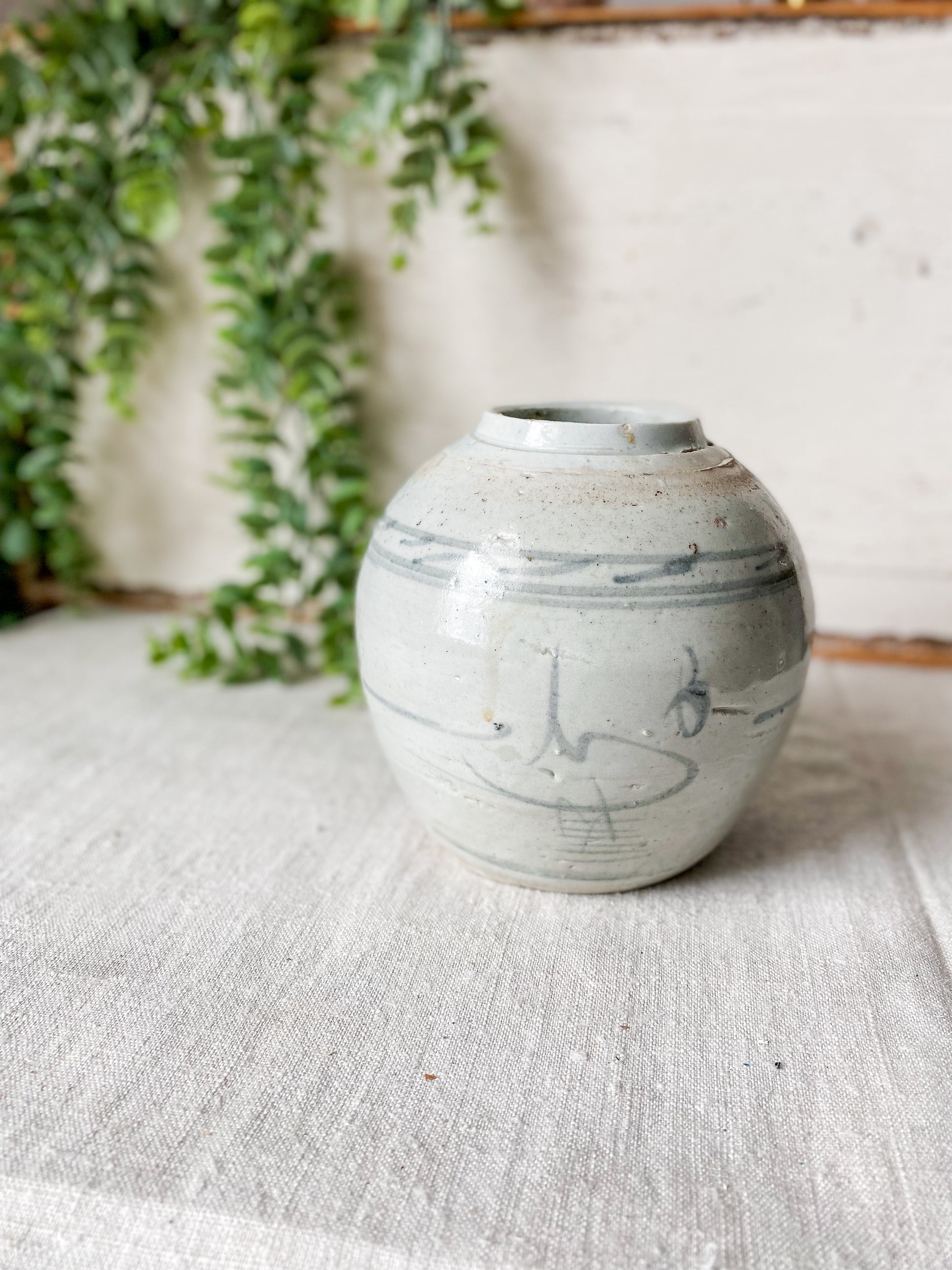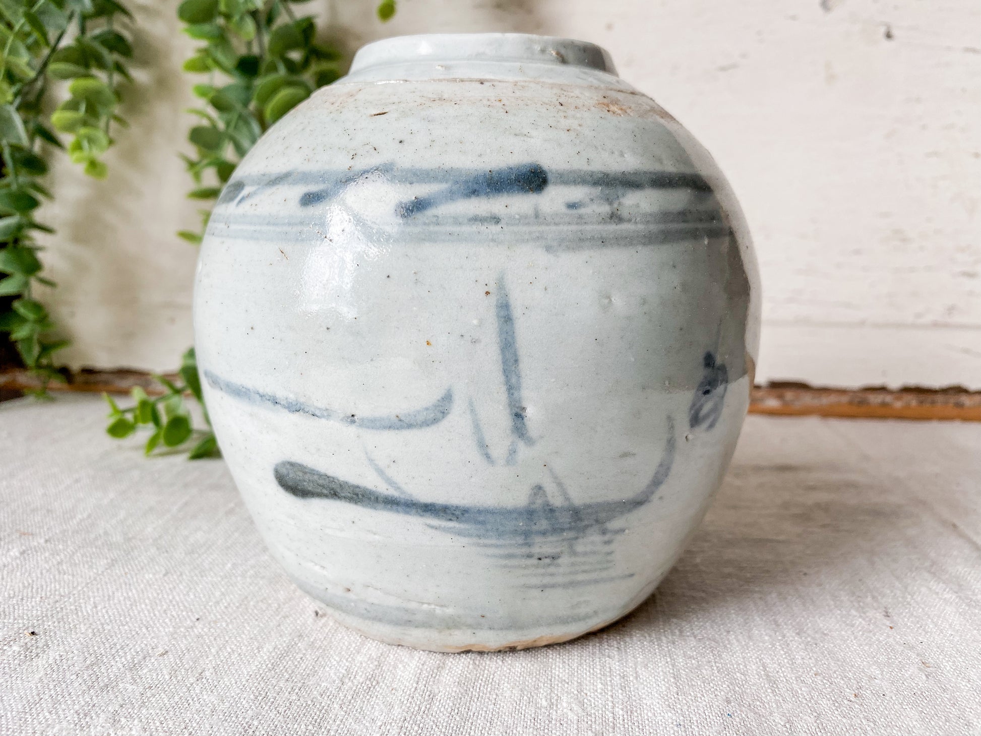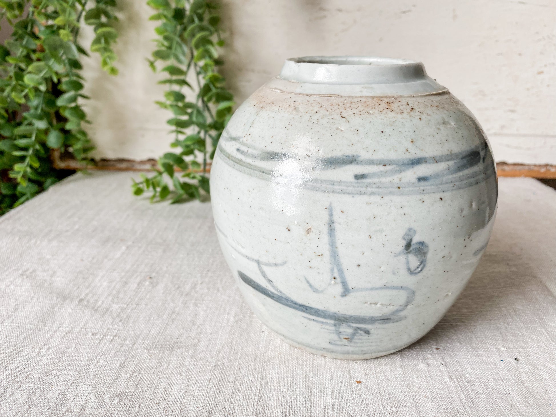Antique Chinese Stoneware 5" Chinoiserie Ginger Jar