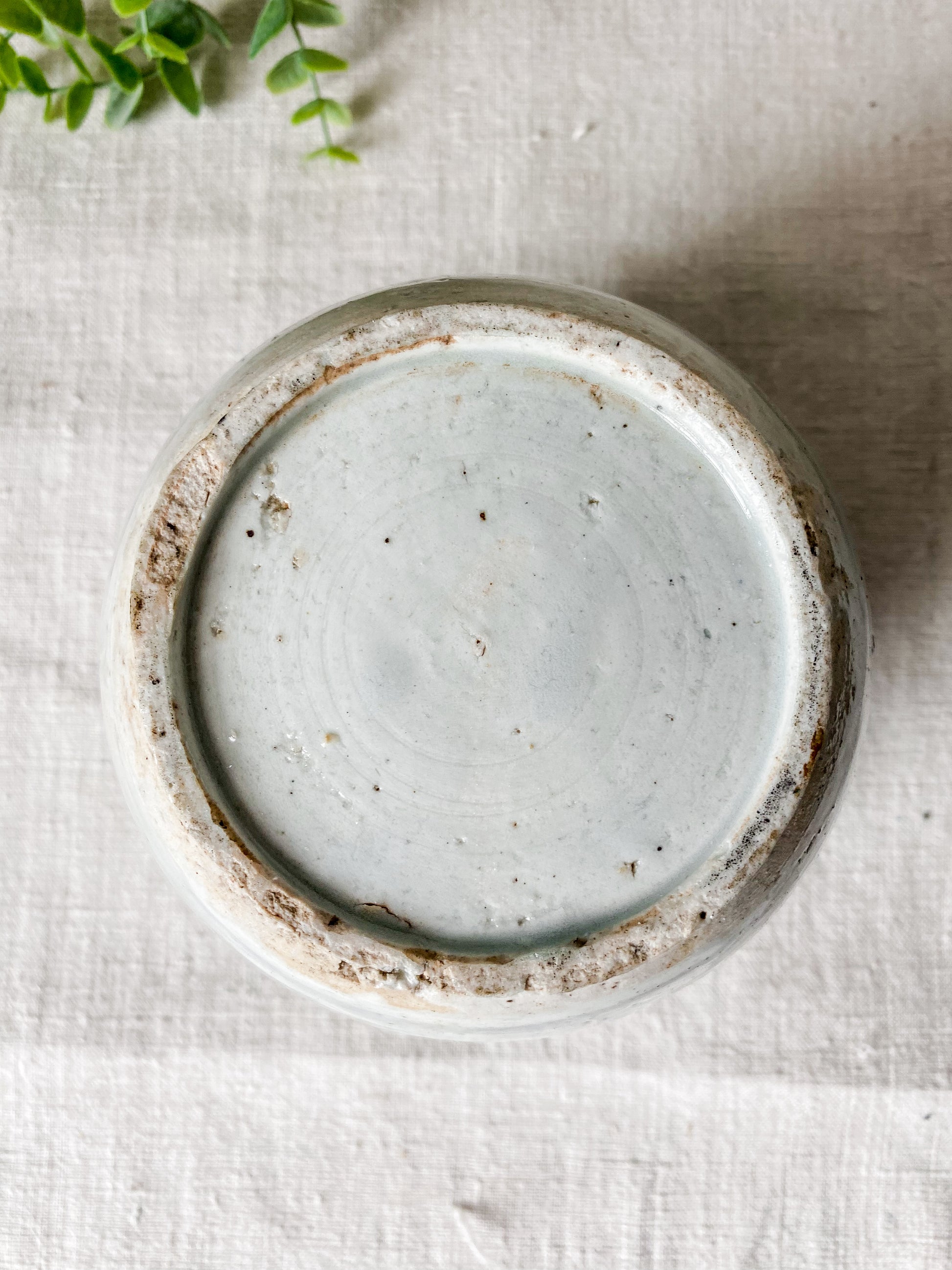 A few nicks and wear along the base but otherwise good display condition. No lid. Beautiful neutral muted tones.
