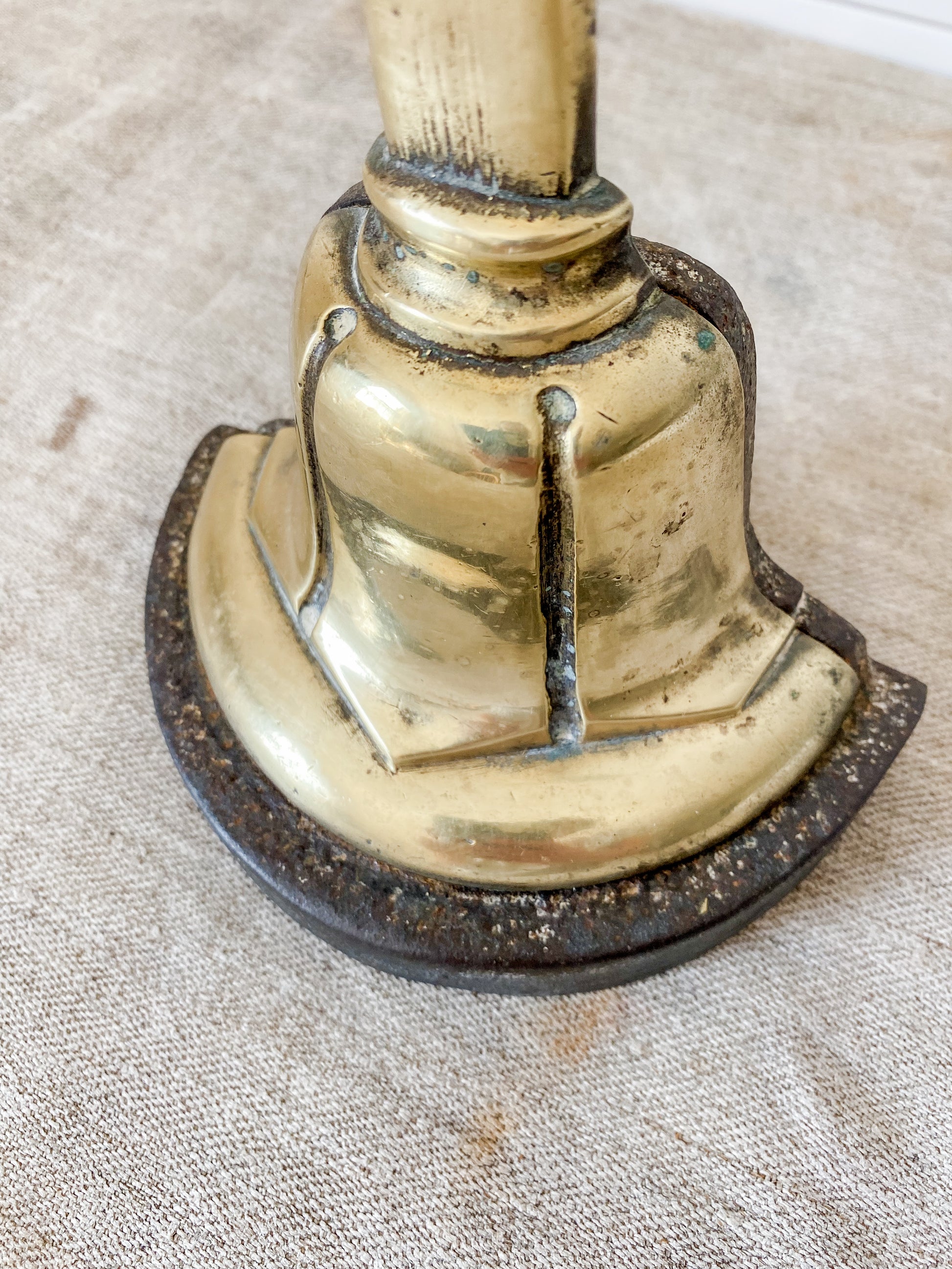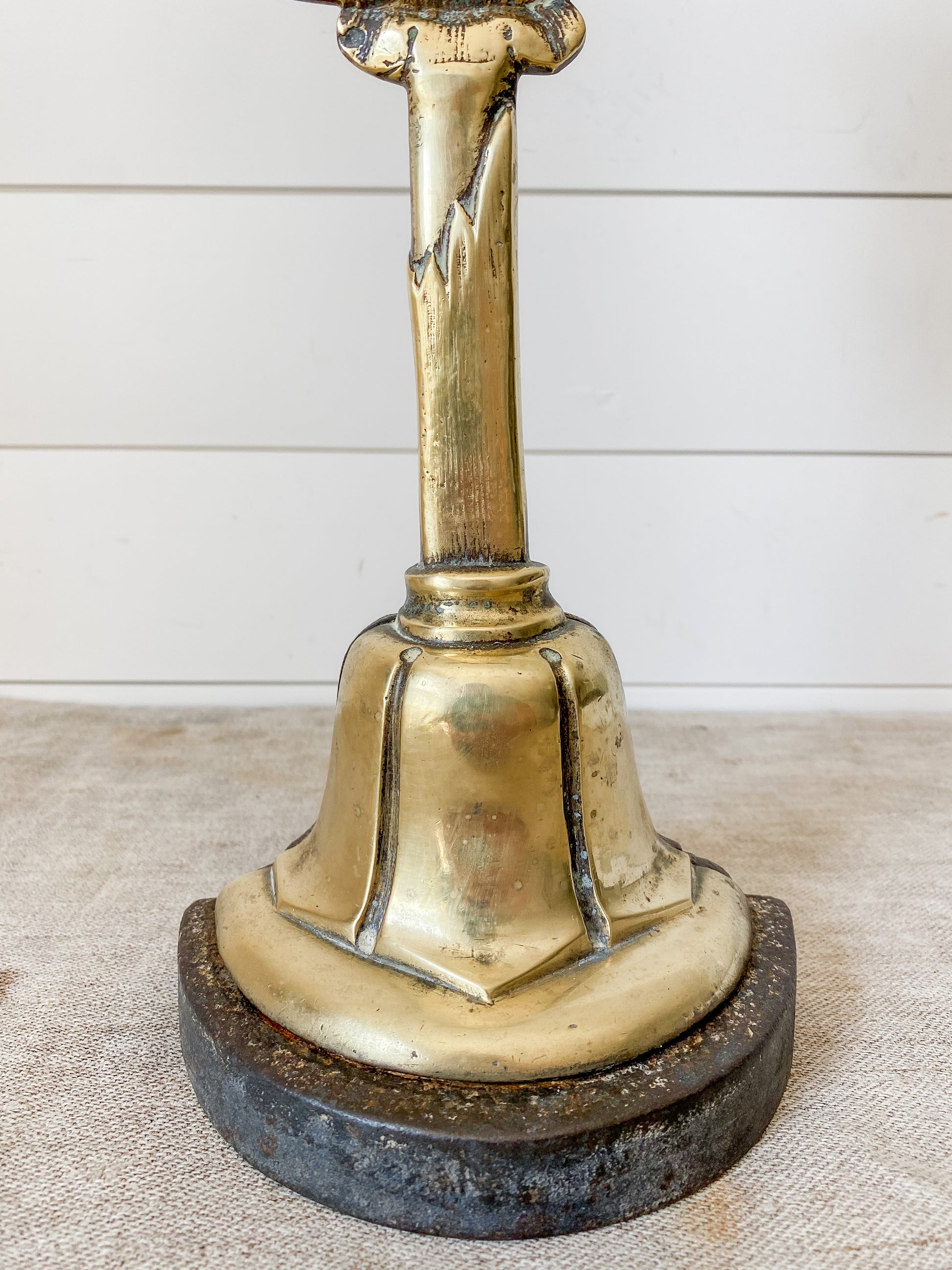 Available is a stunning early Victorian door stop, made of brass with a cast iron weight. This pieces dates to circa 1840 and is in excellent vintage condition.