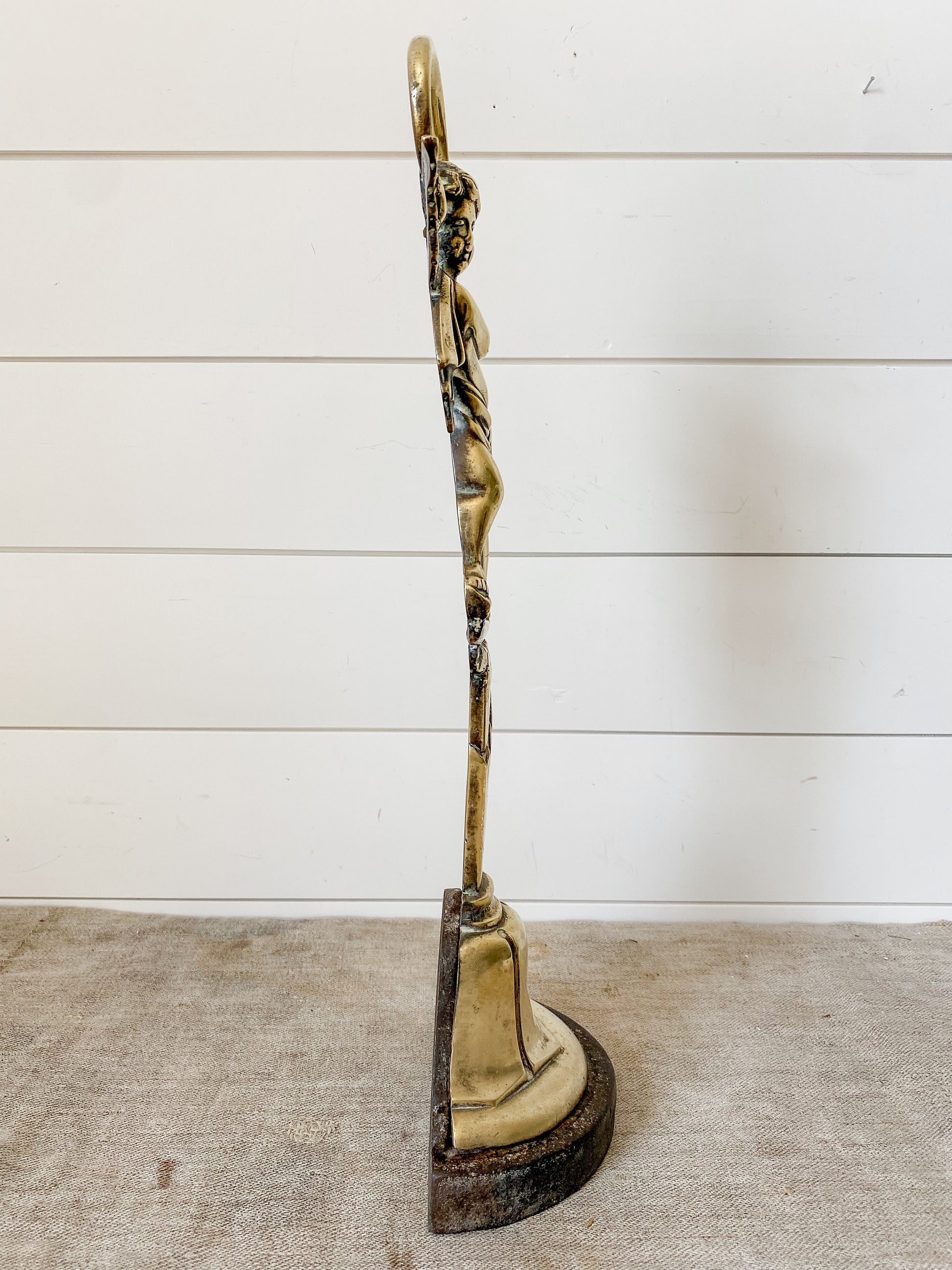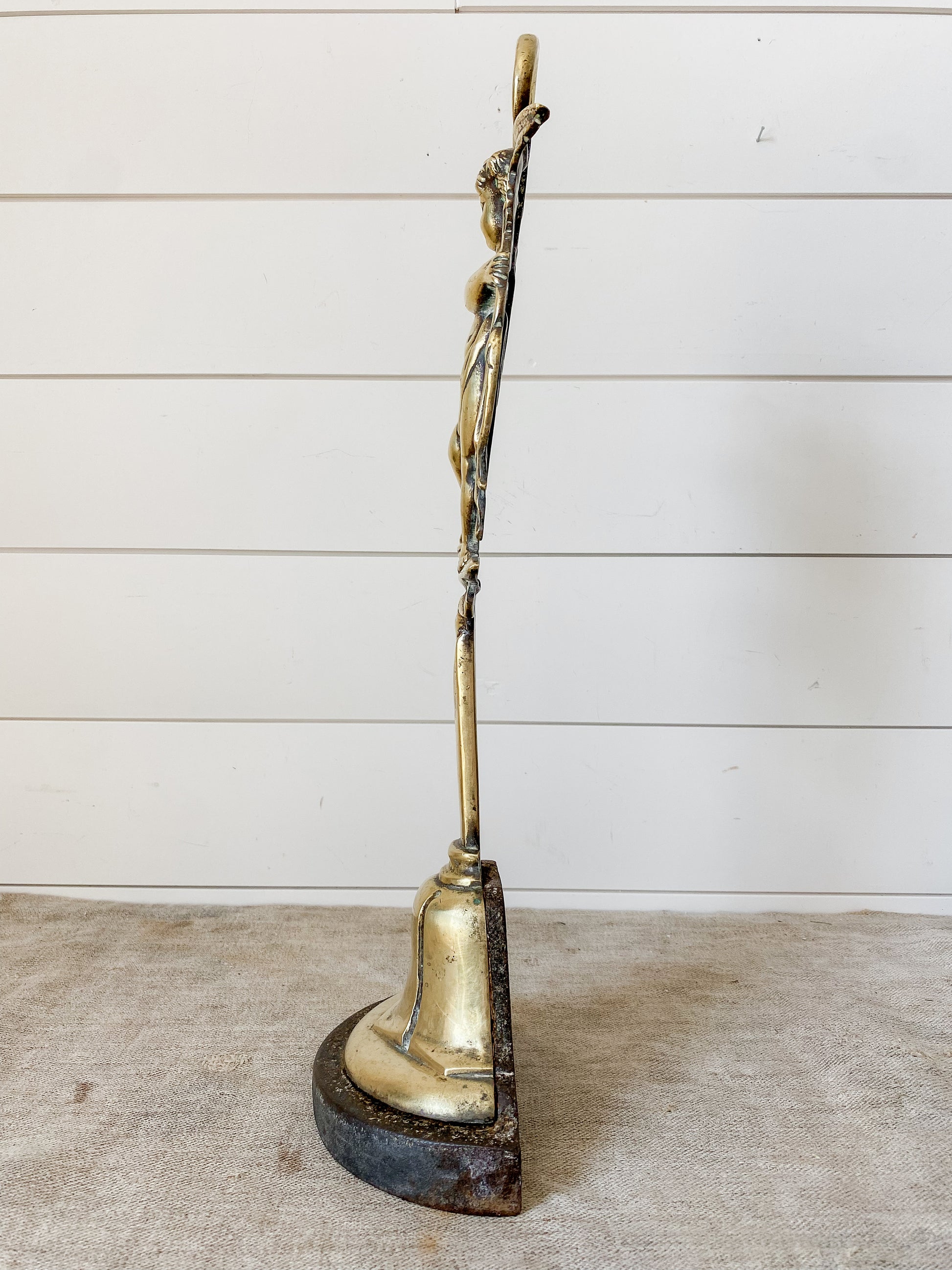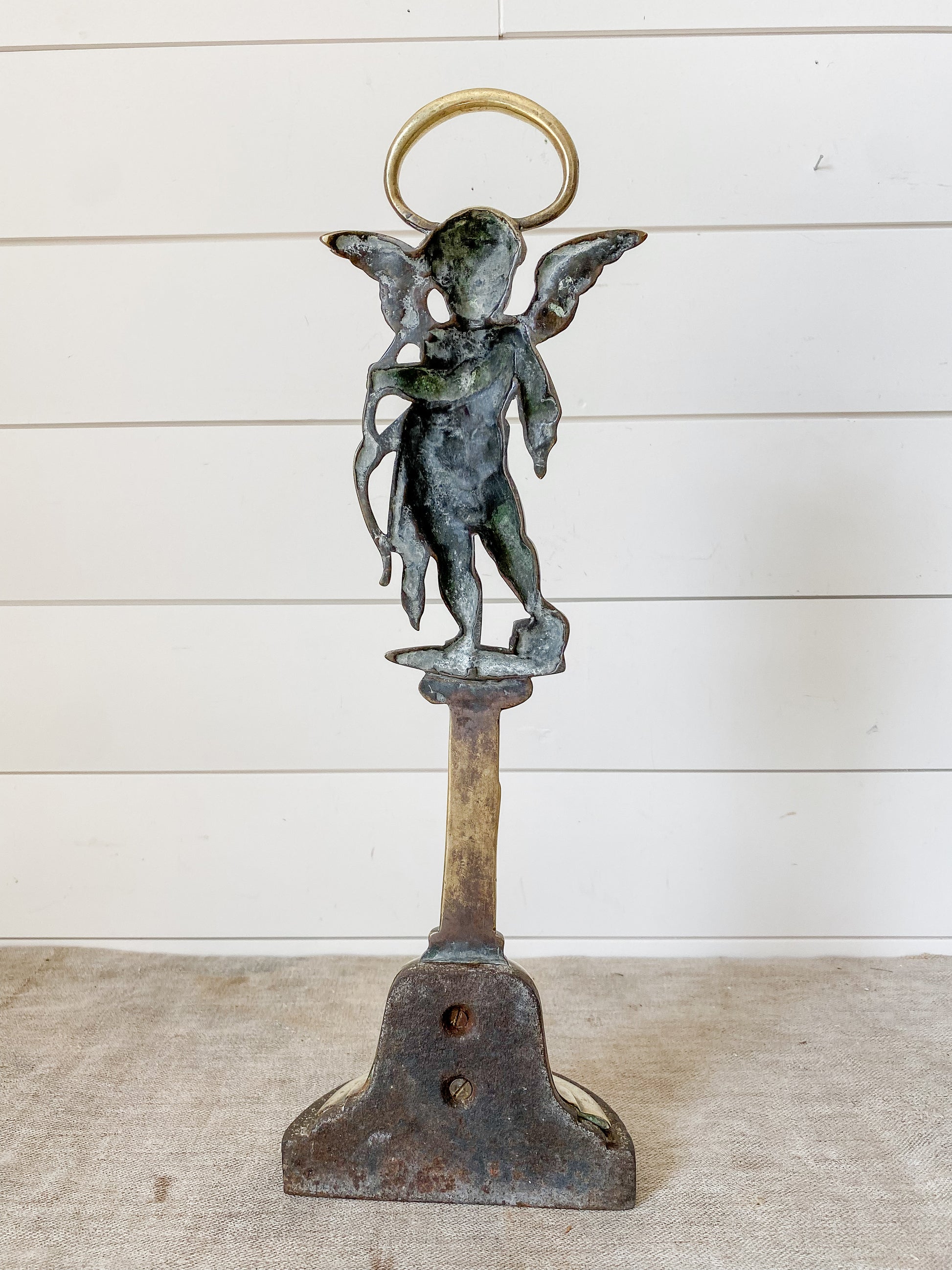 Antique Early Victorian Brass & Cast Iron Cherub Door Stop, c1840