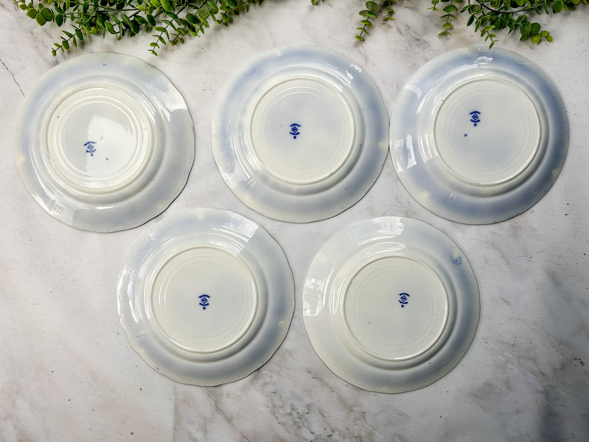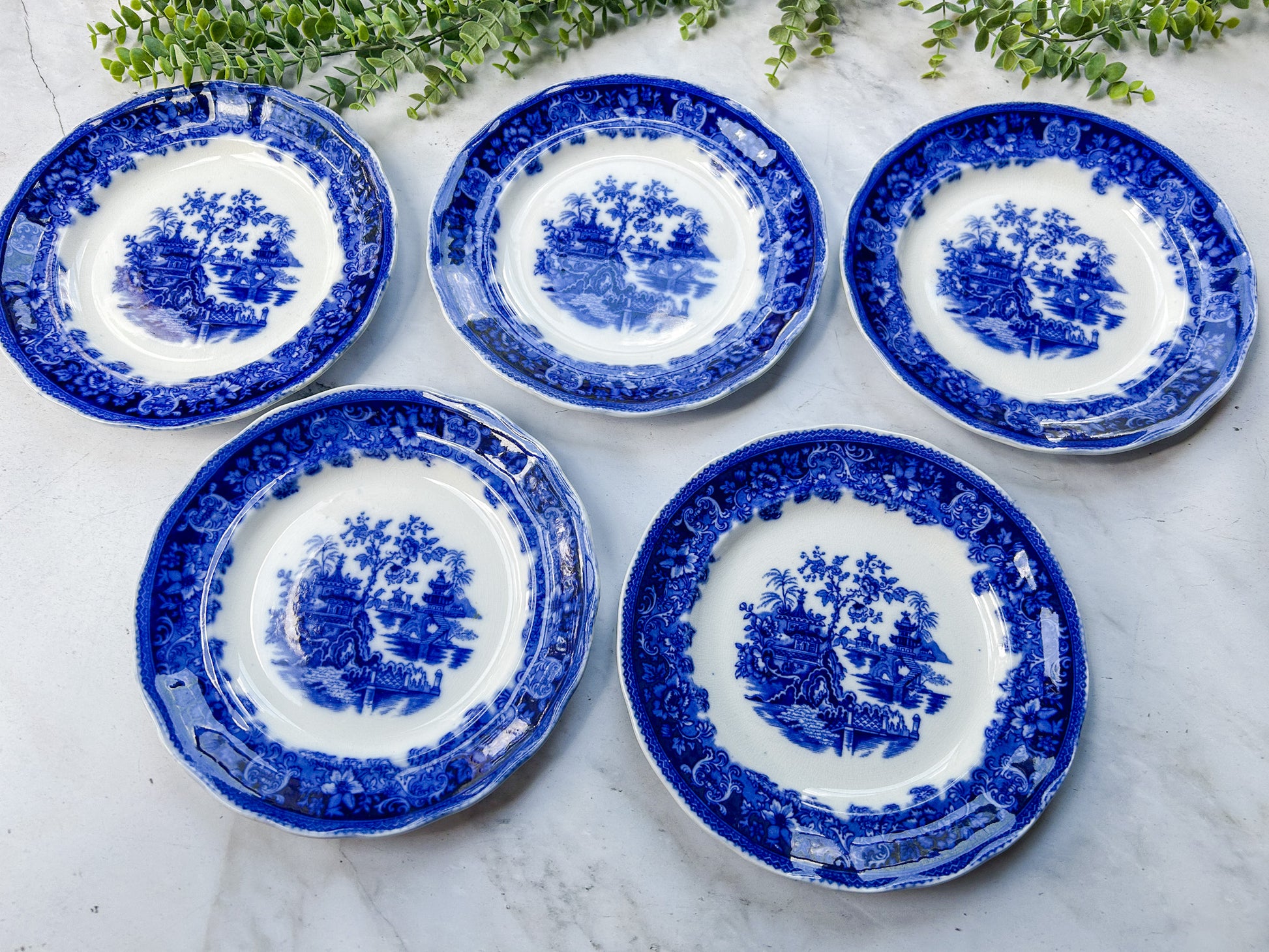 Available are 5 antique flow blue plates in beautiful condition and hard to find pattern. Priced separately; choose quantity desired.