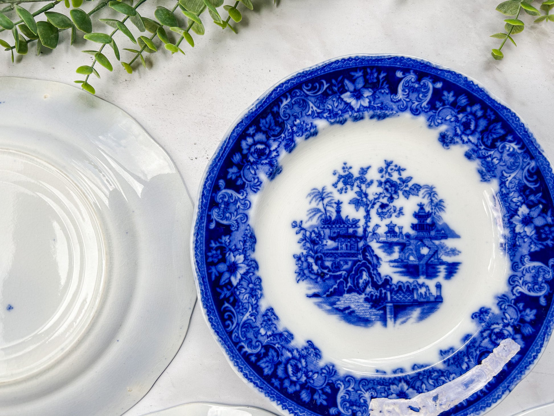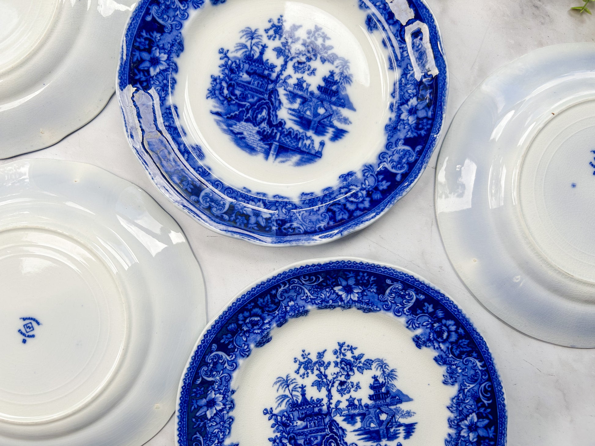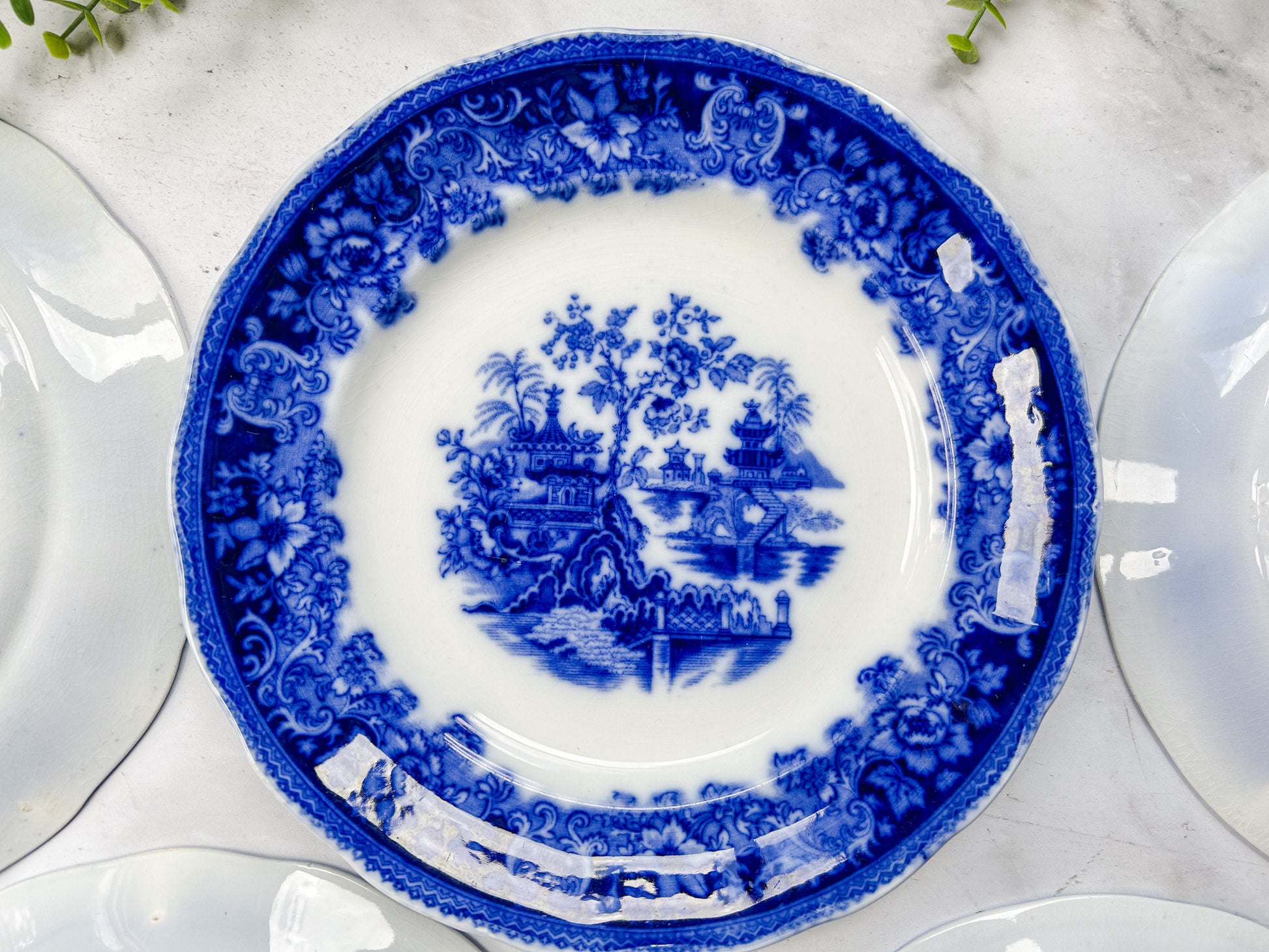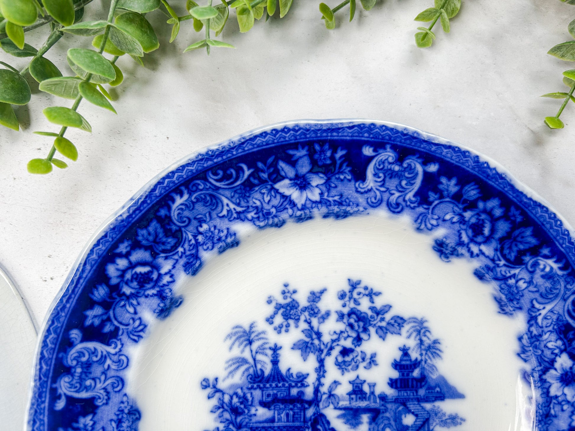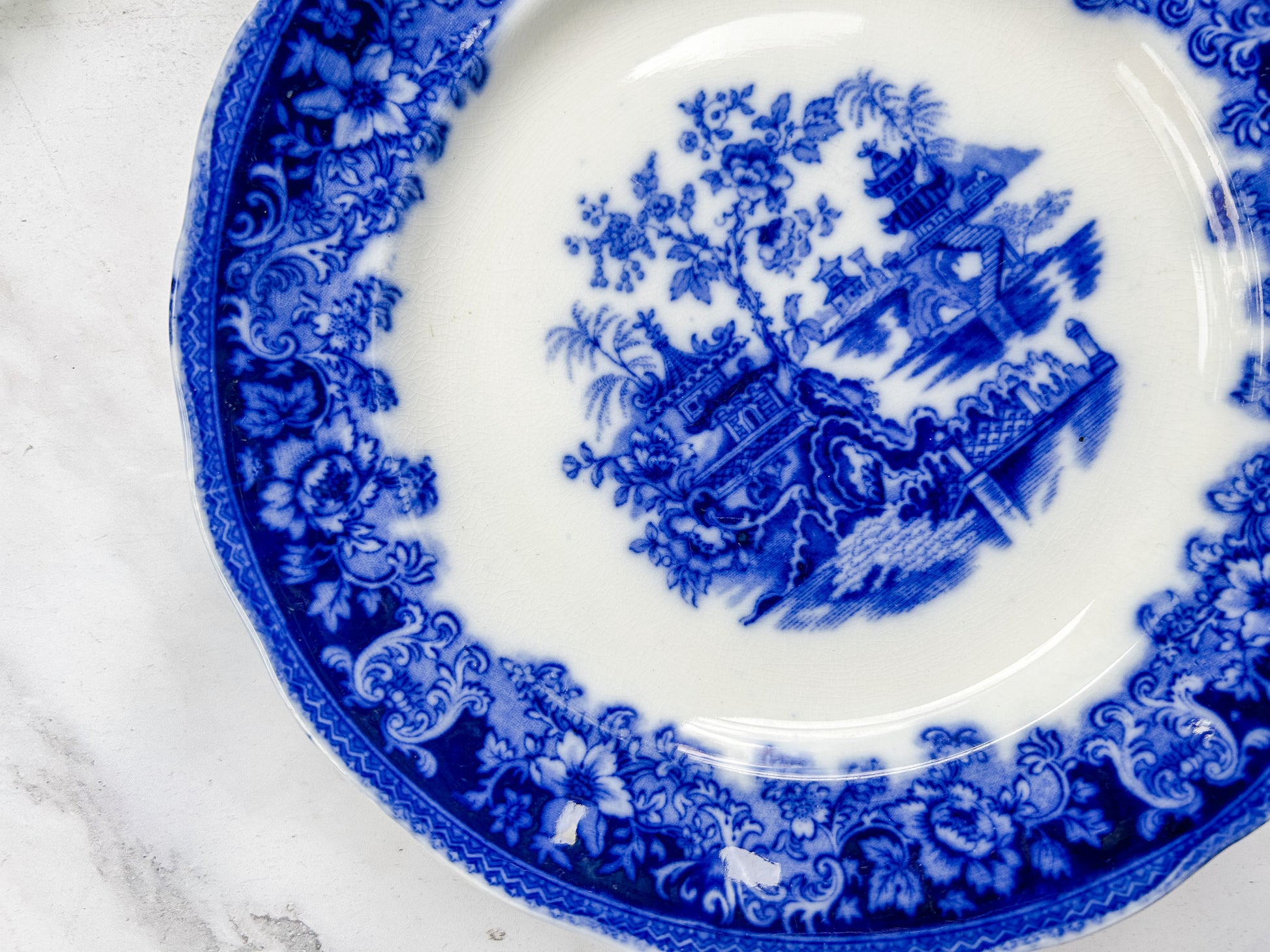 Antique Flow Blue 10” Plate - Shanghai, England 1900s (5 Available)