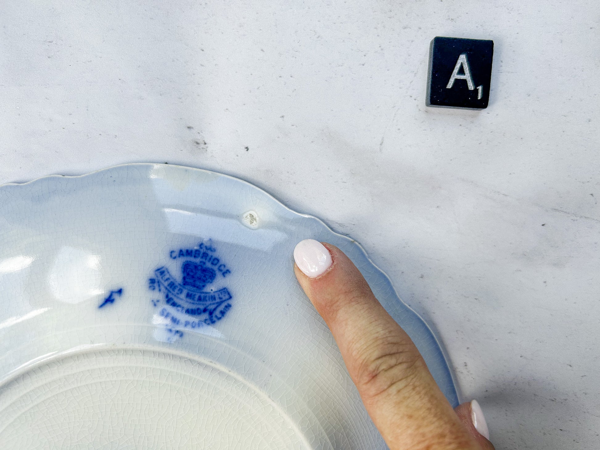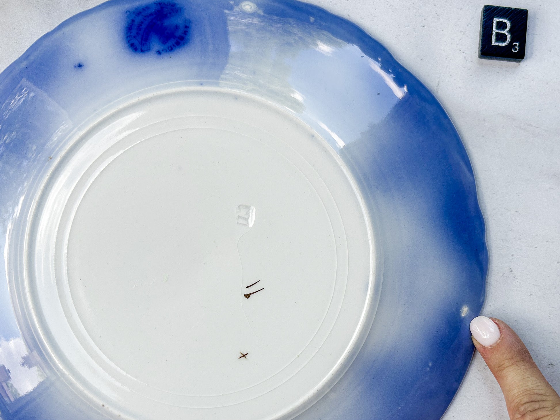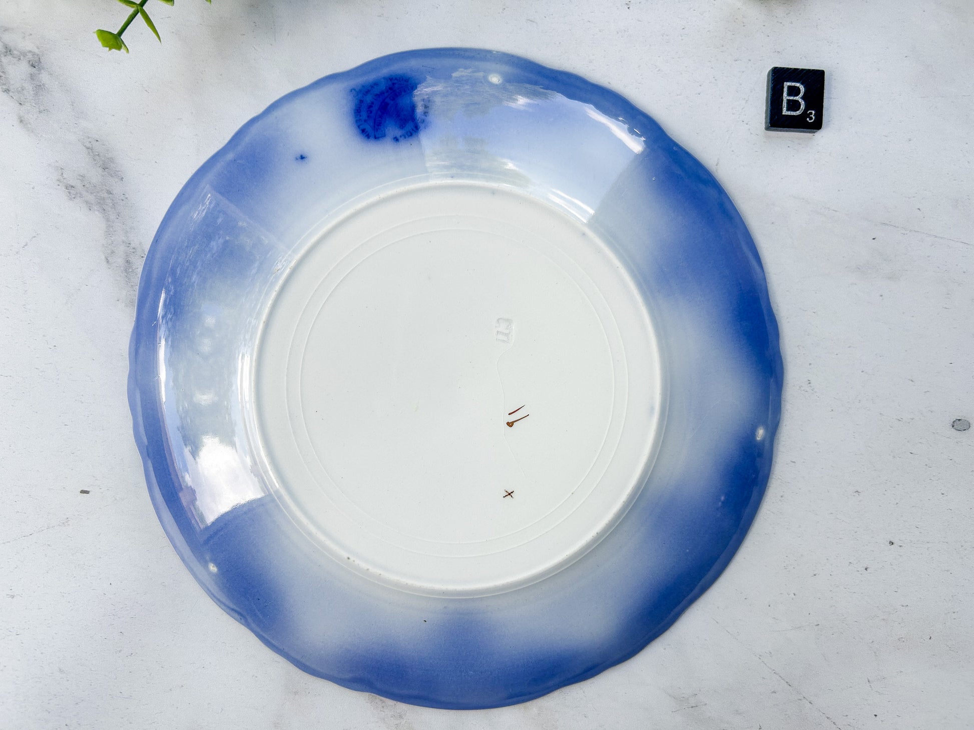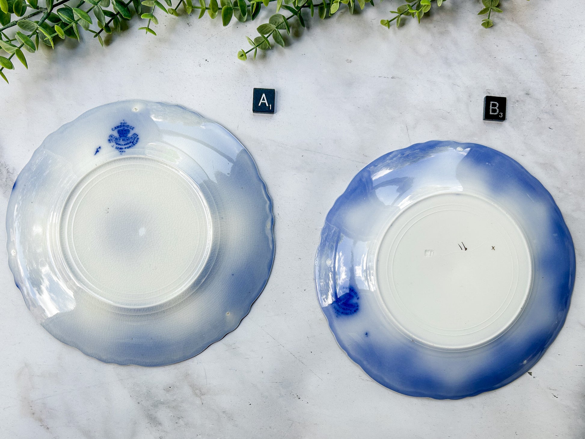Available are your choice of two antique flow blue ironstone plates in excellent condition. Priced separately.