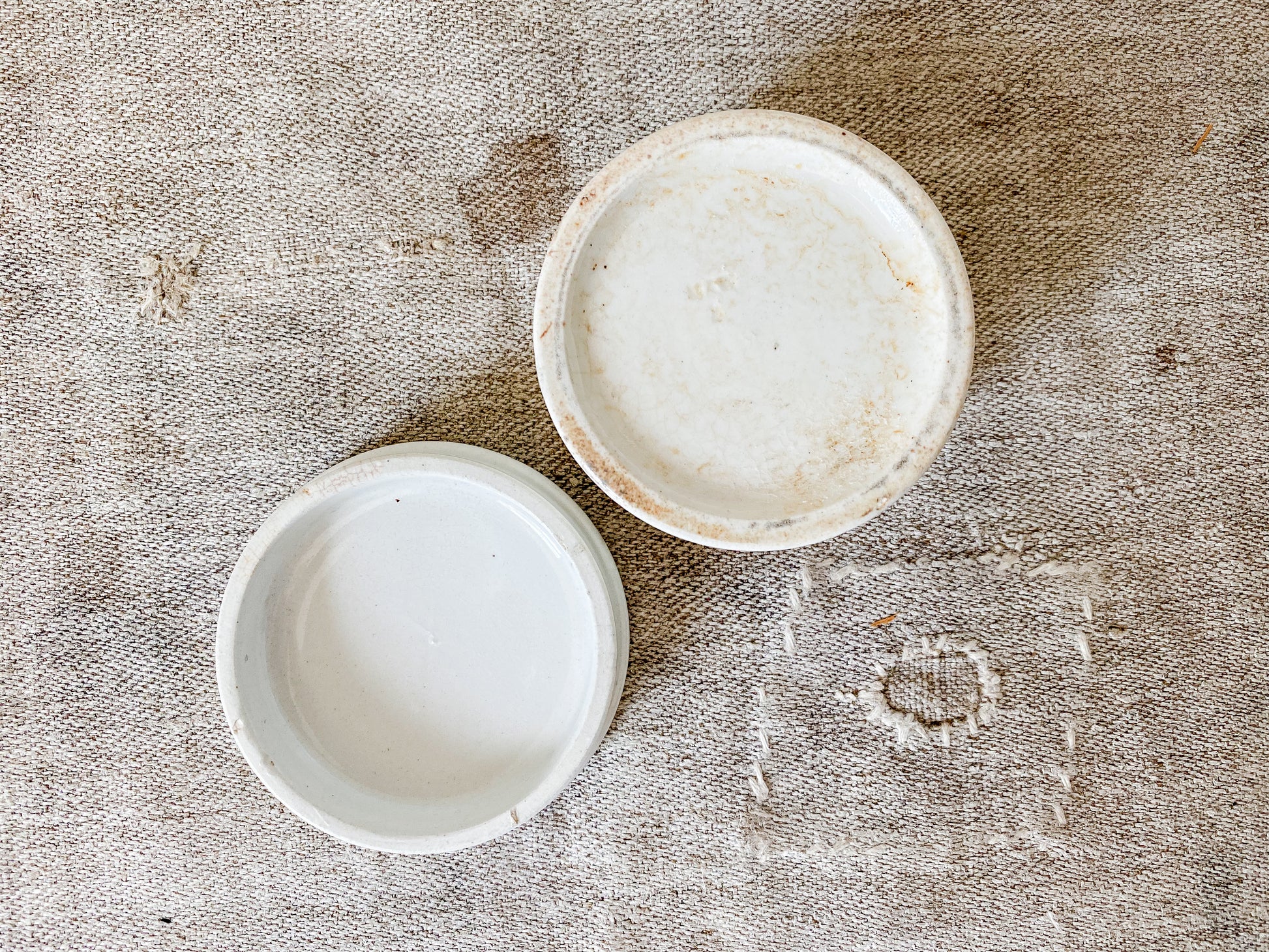 The lid has a dark dirt line on the edge. Some staining on base. Overall good antique condition. Dates to last quarter of 19th century.