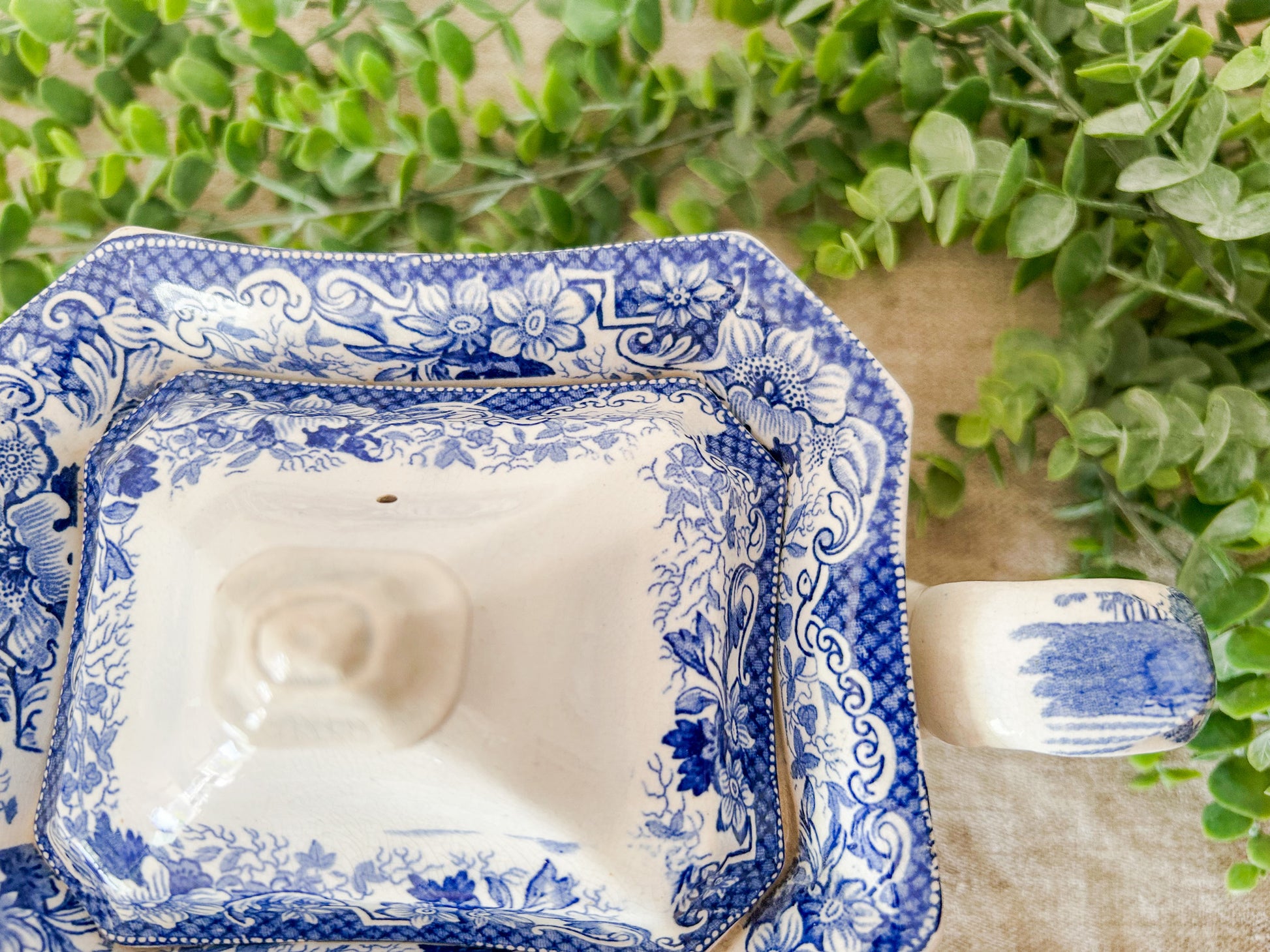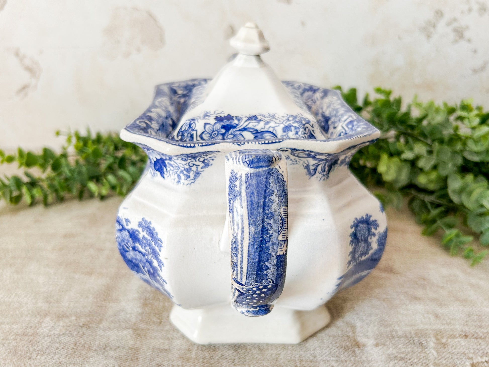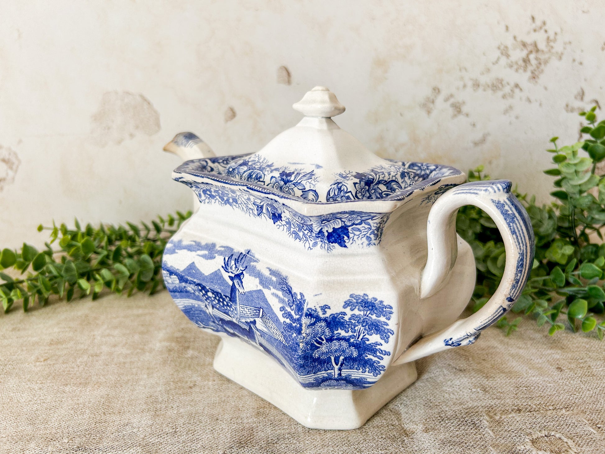 Antique Ironstone Blue Transferware Teapot (Unmarked)