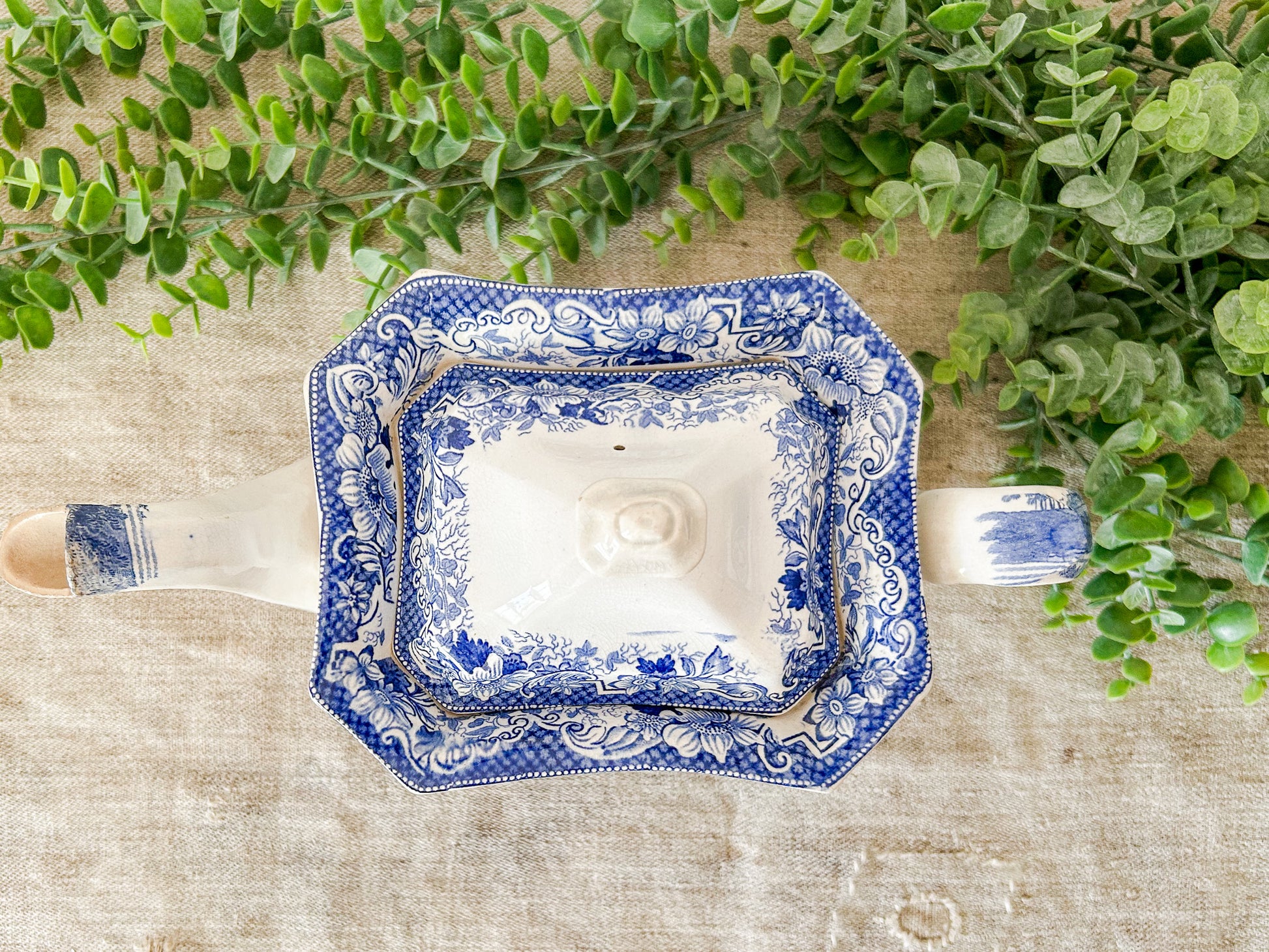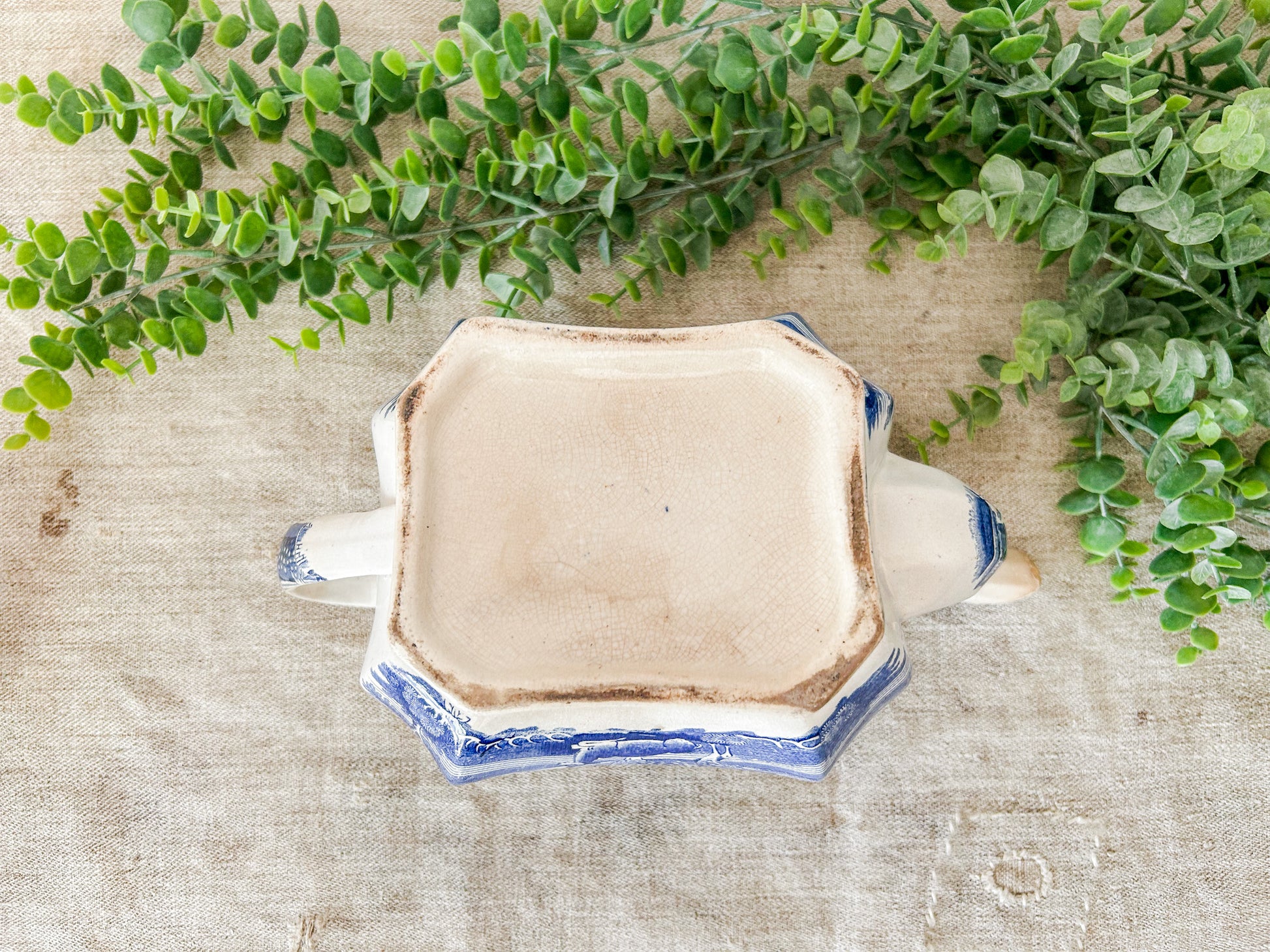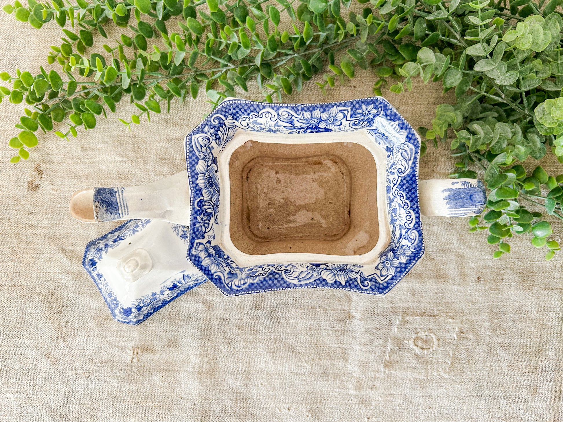 Antique Ironstone Blue Transferware Teapot (Unmarked)