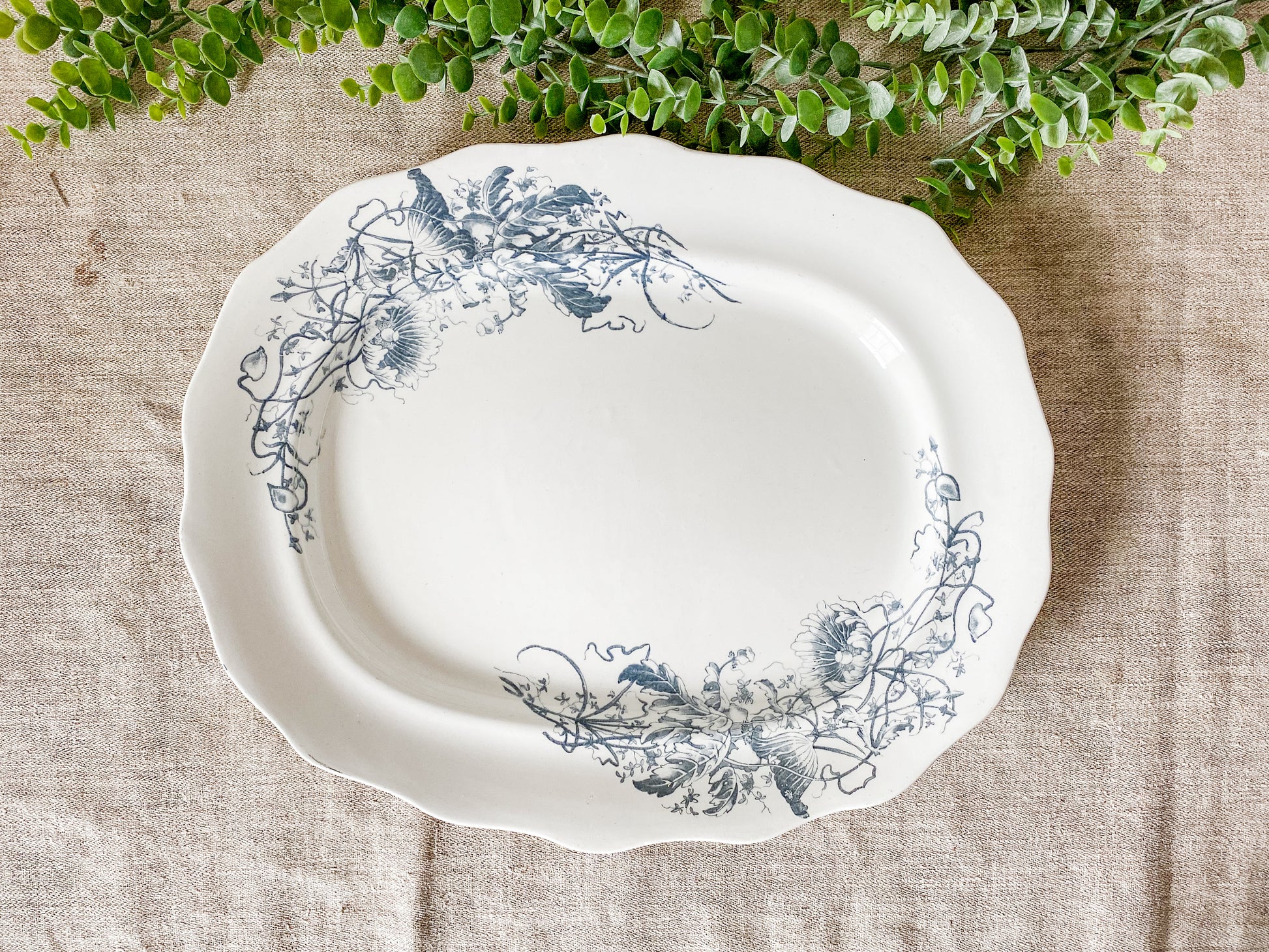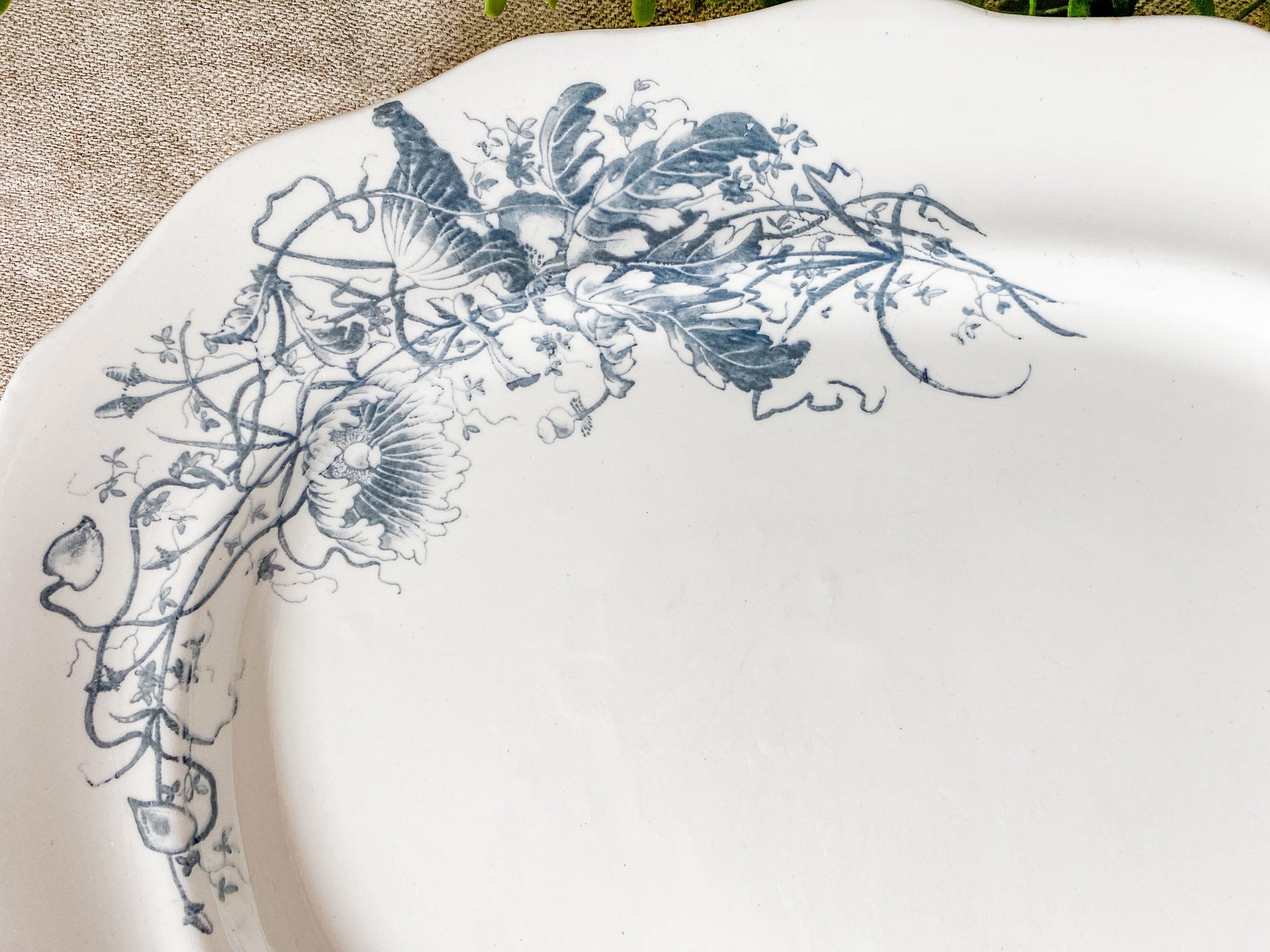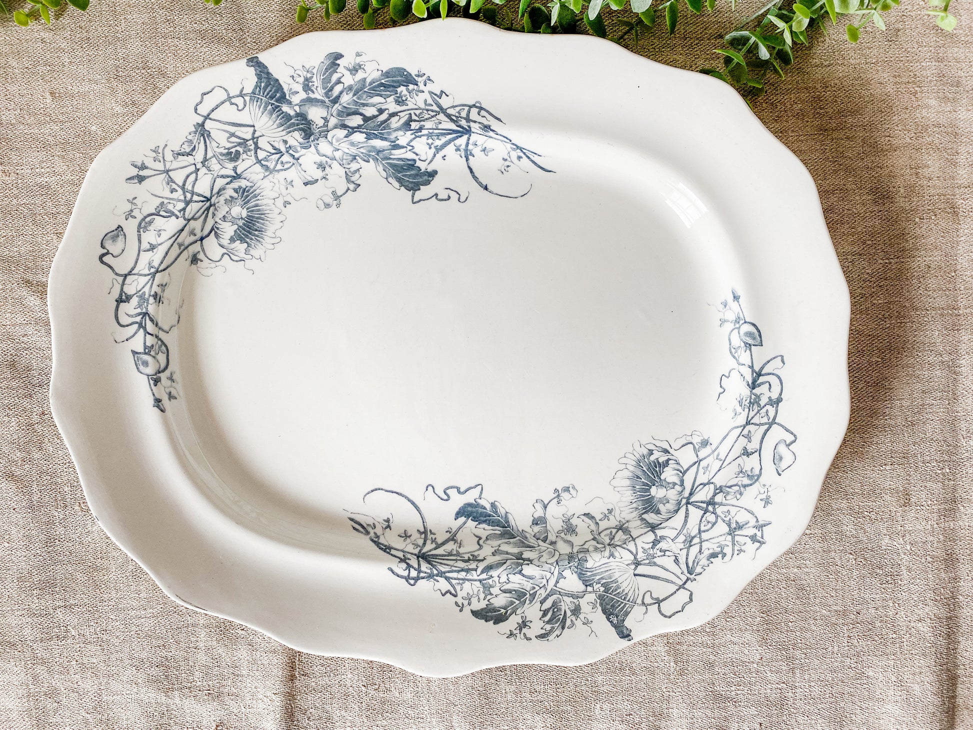 Antique Ironstone Dark Blue Transferware 15” Platter by Turner’s, England