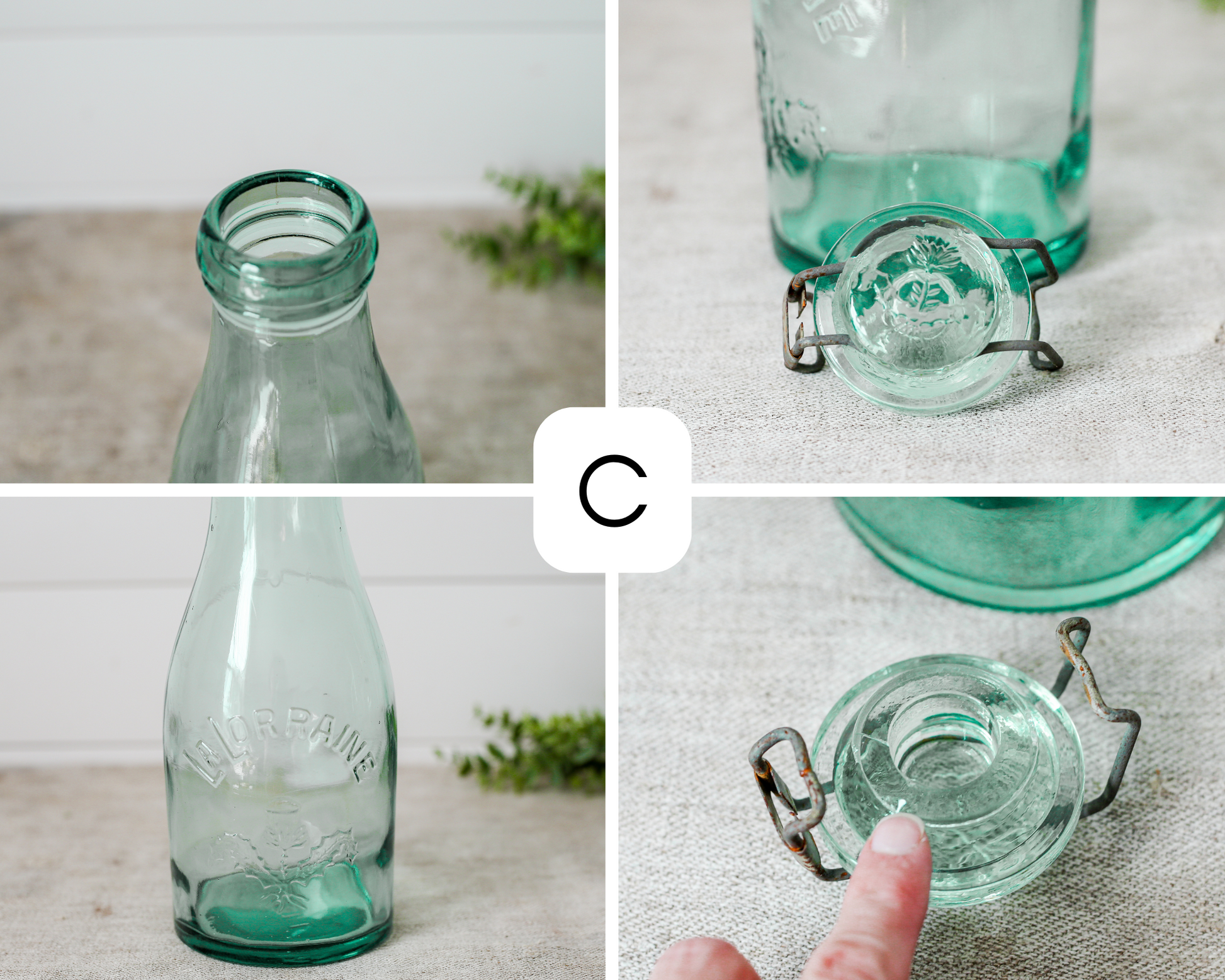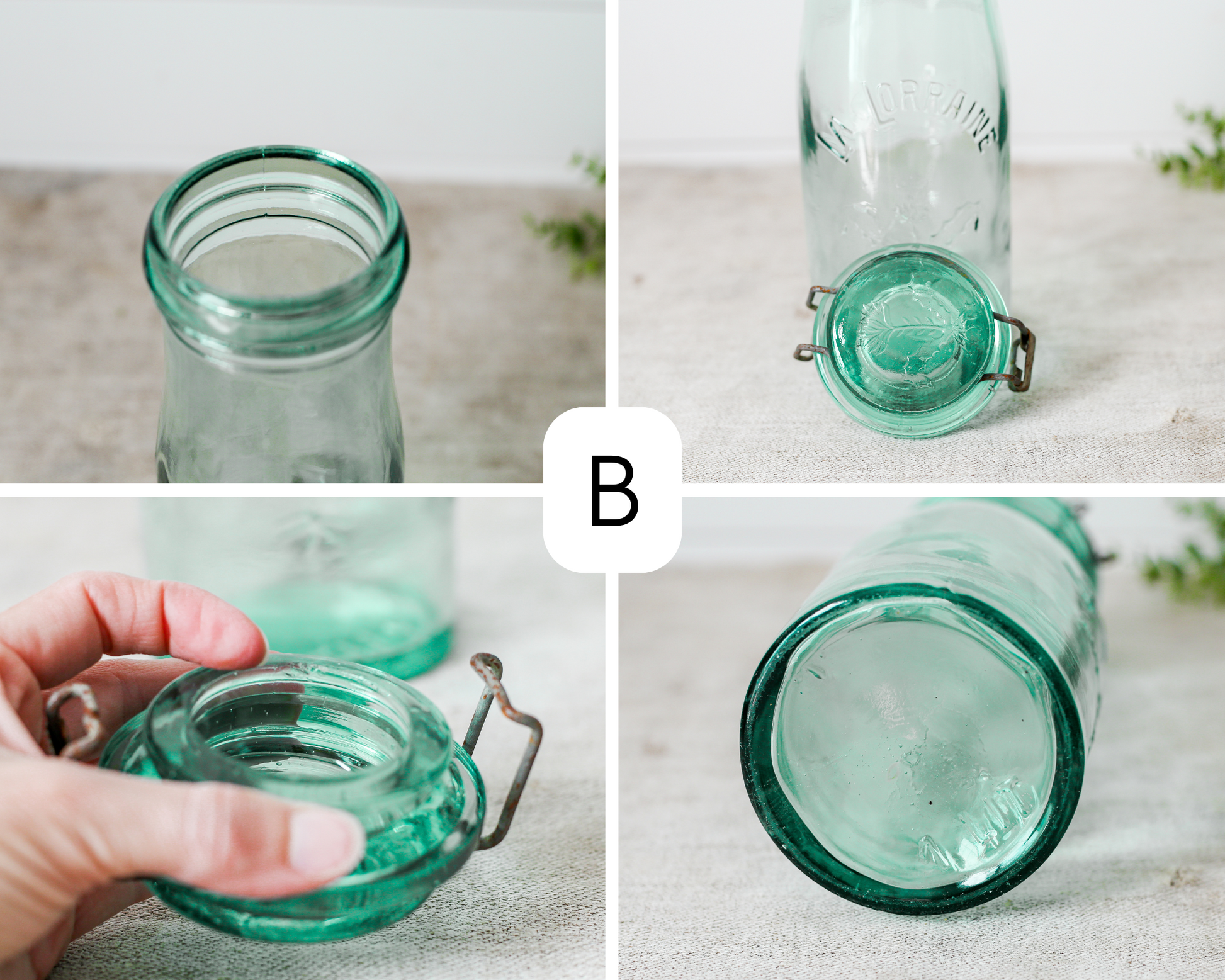 Antique La Lorraine French Aqua Glass Canning Jars