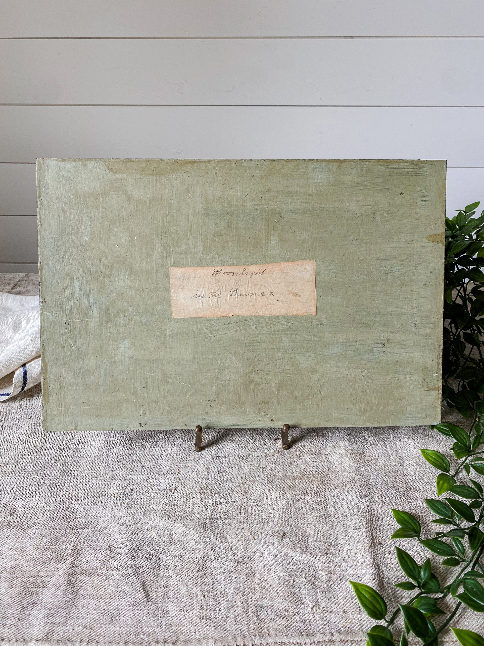 Antique Original Landscape Oil Painting on Board | Moonlight on the Dunes