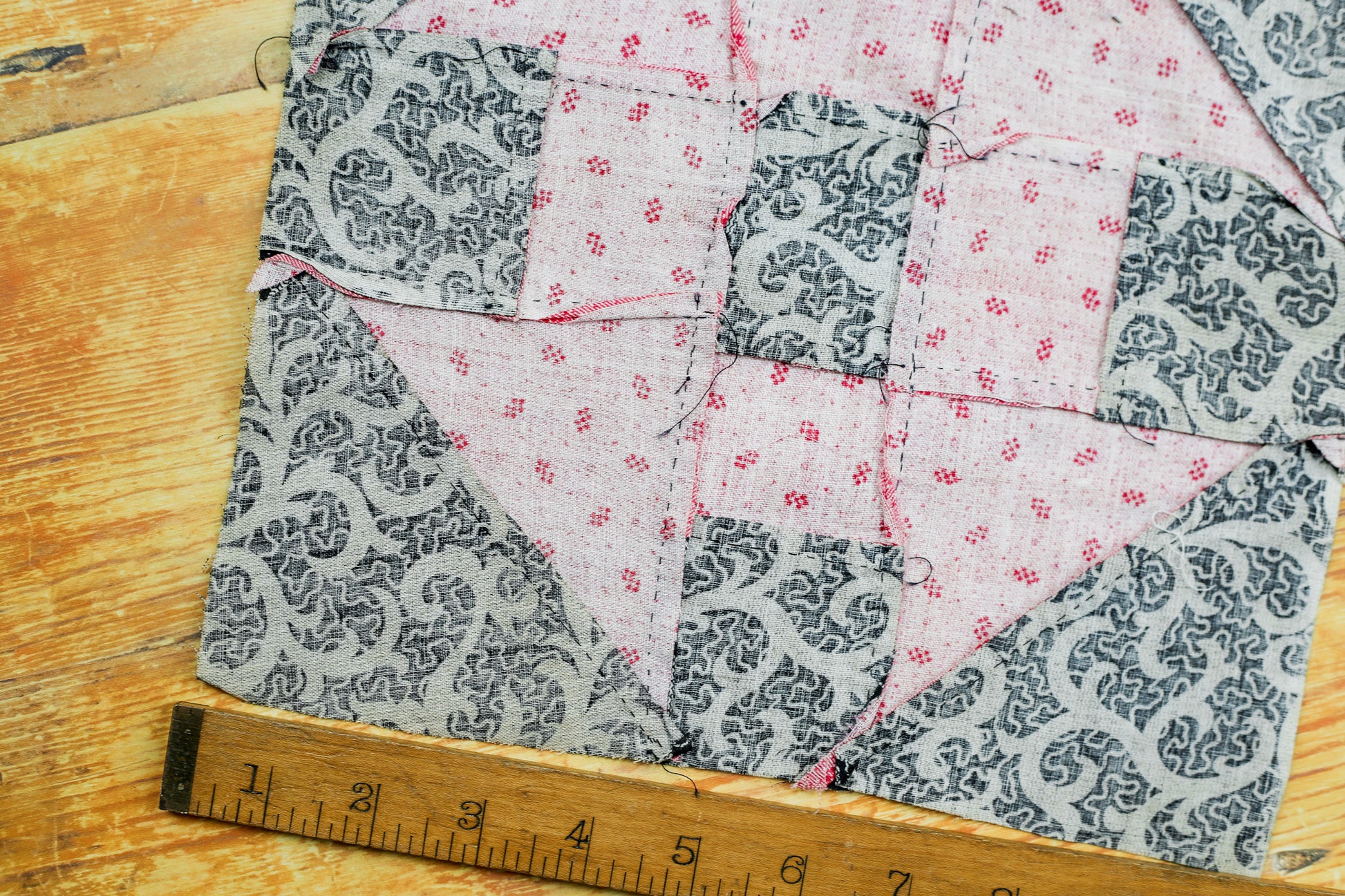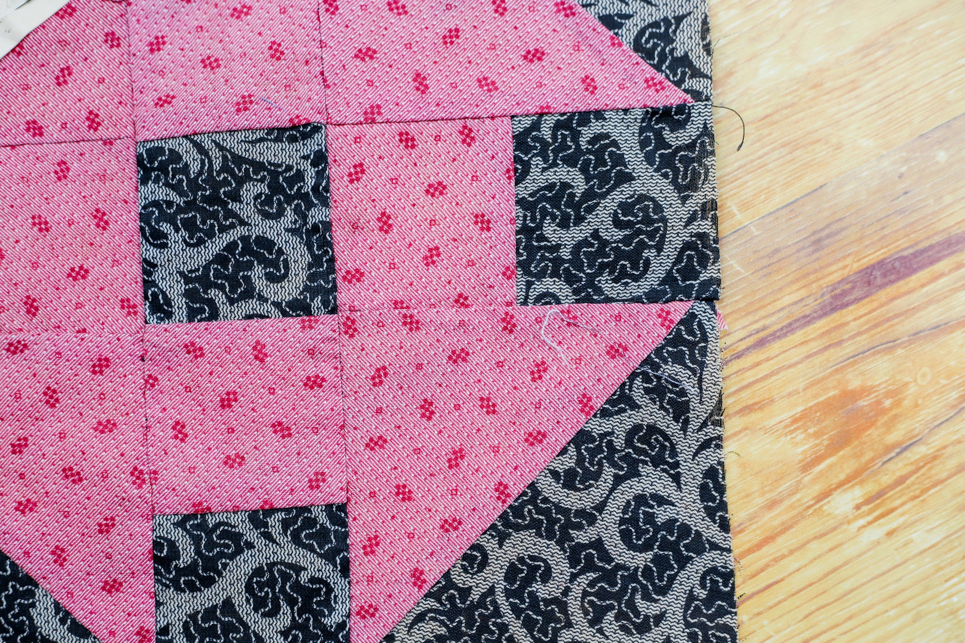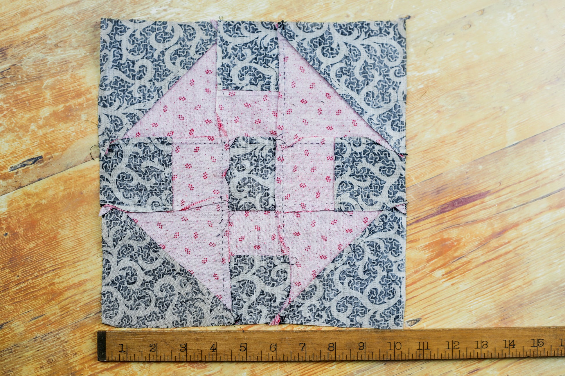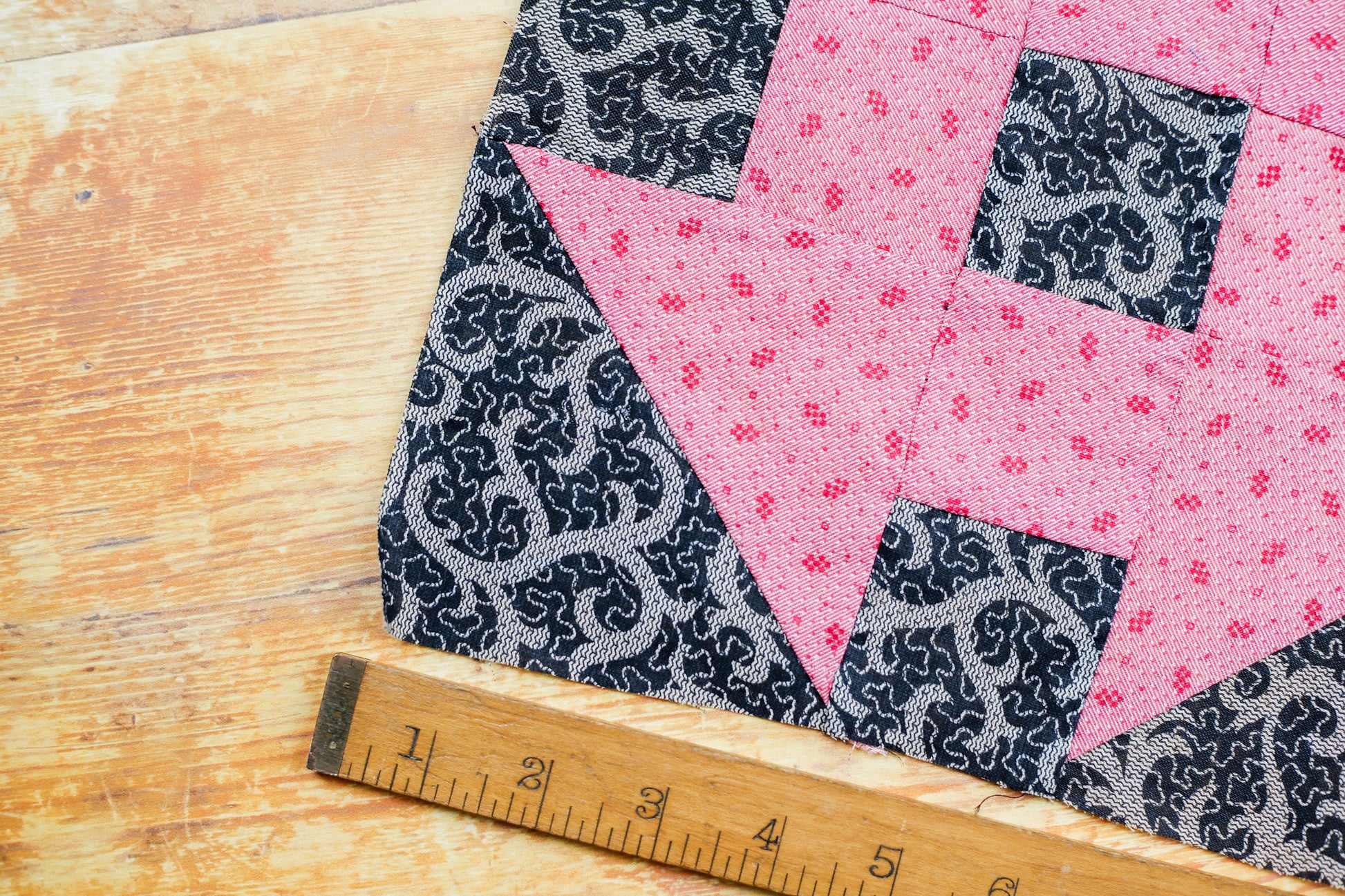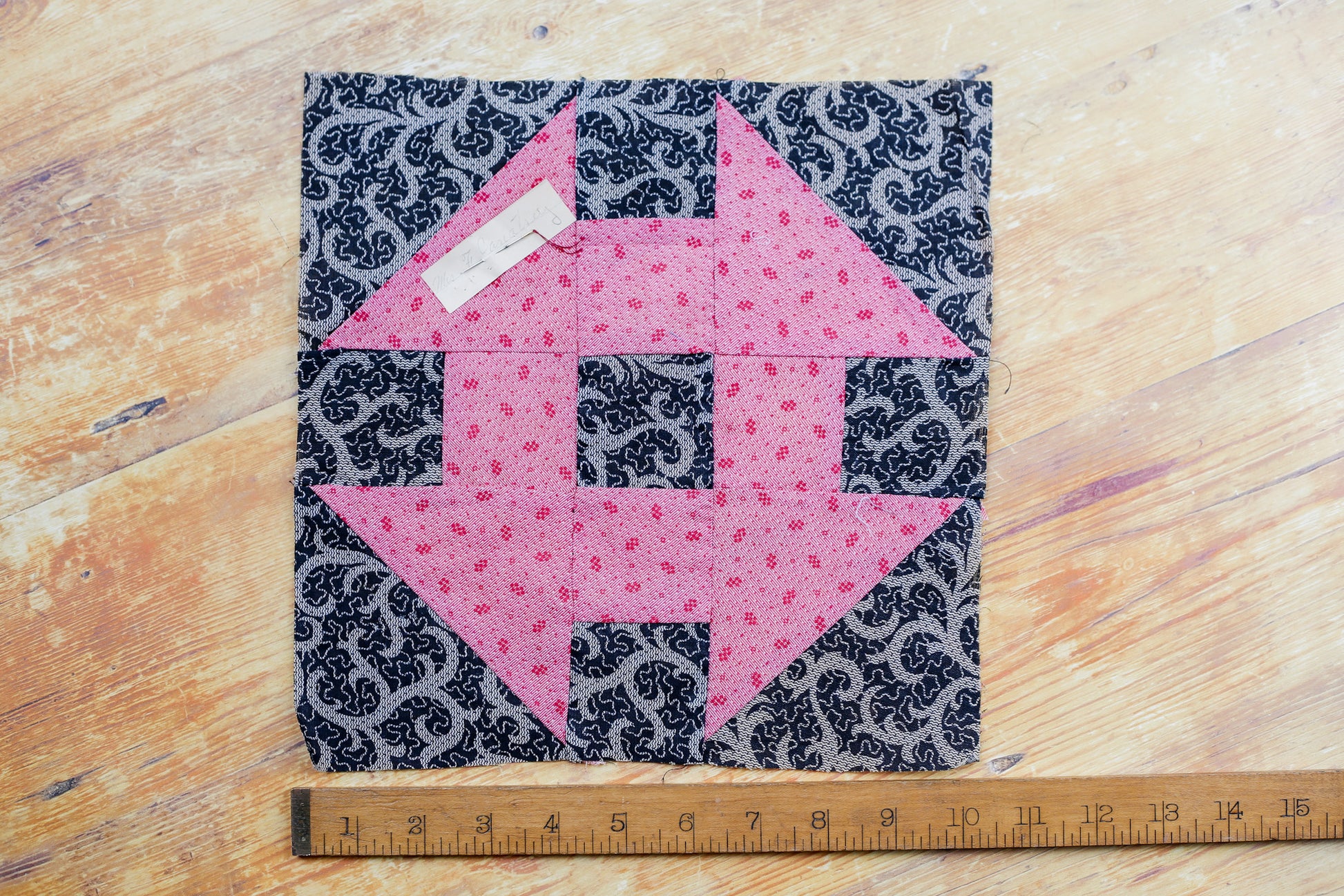Antique Pink and Black Churn Dash Signed Quilt Block, c1910