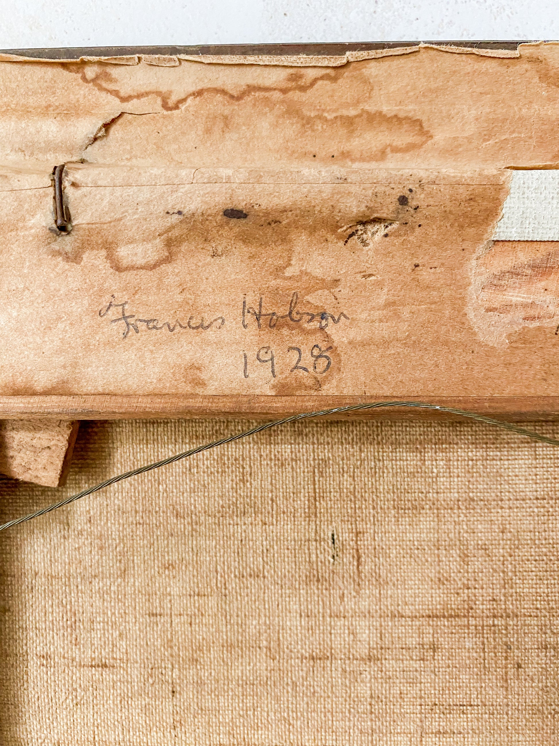 The bottom left corner is signed "Frances Hobson 1928", with the name and date also written on the back upper edge of the frame.