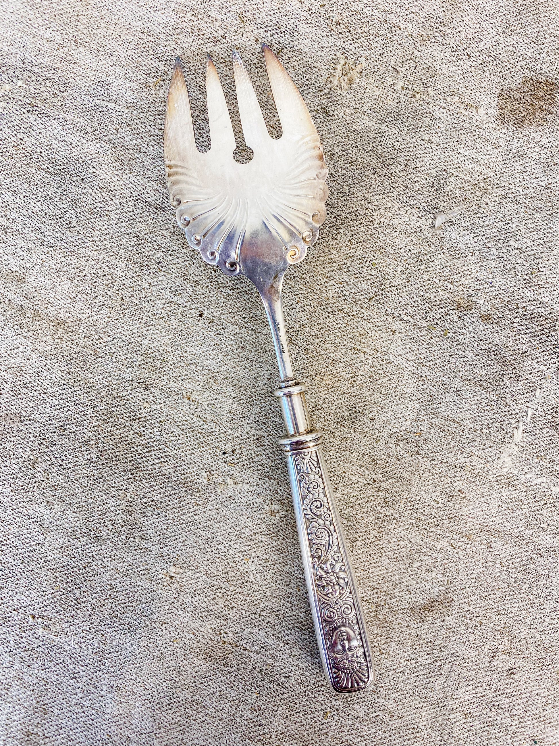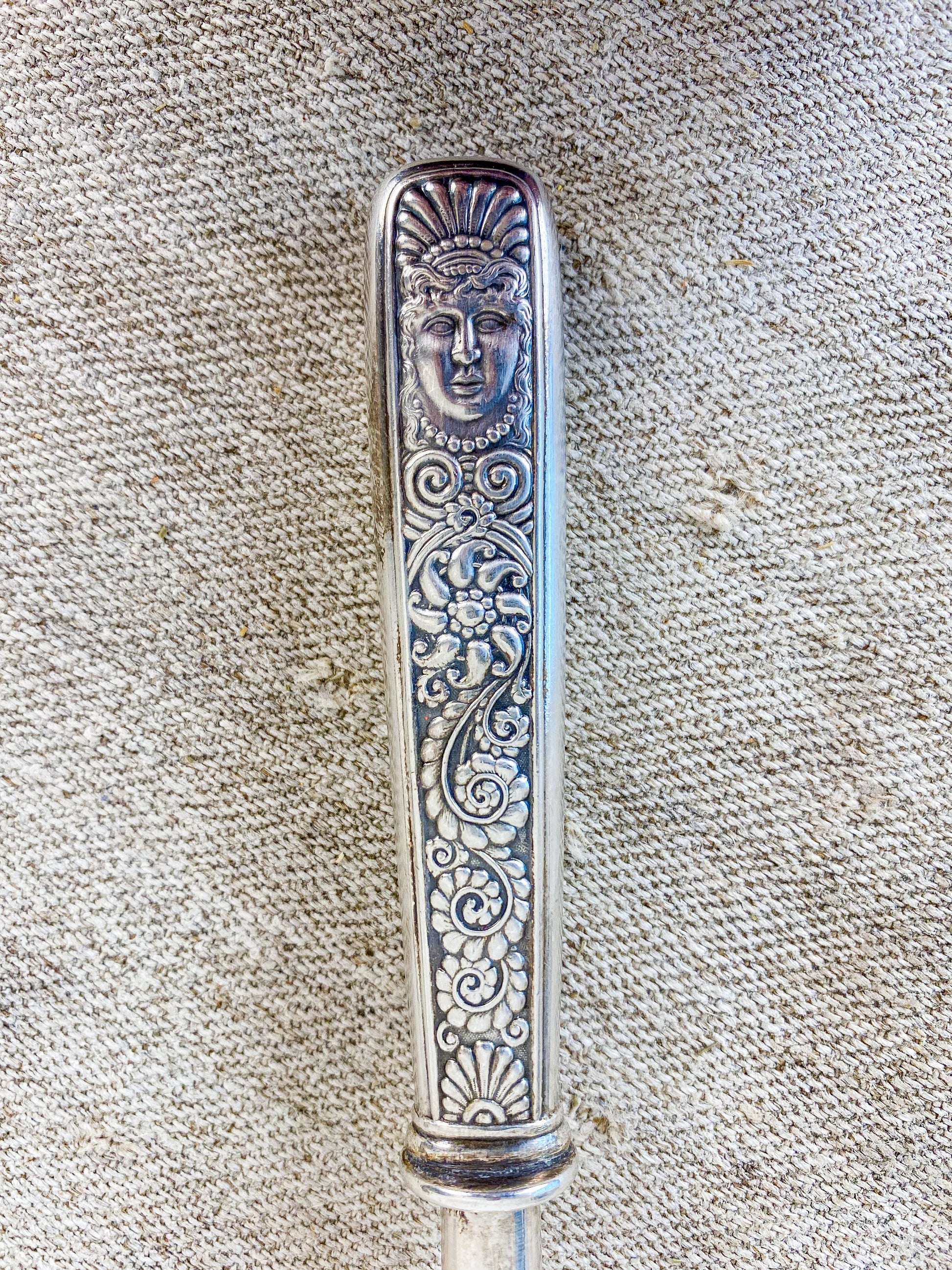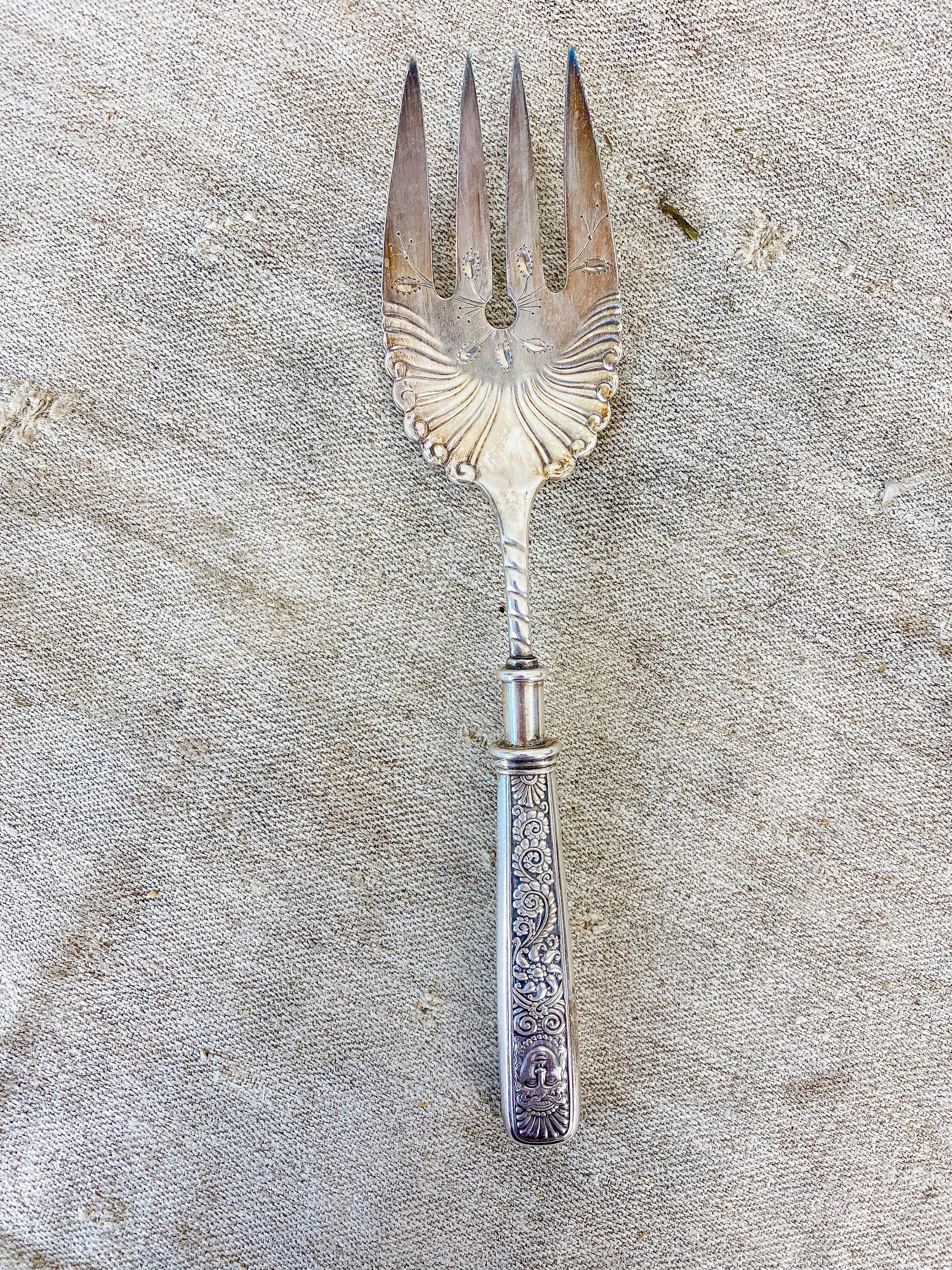Antique Silverplate Assyrian Head Cold Meat Fork, c1886
