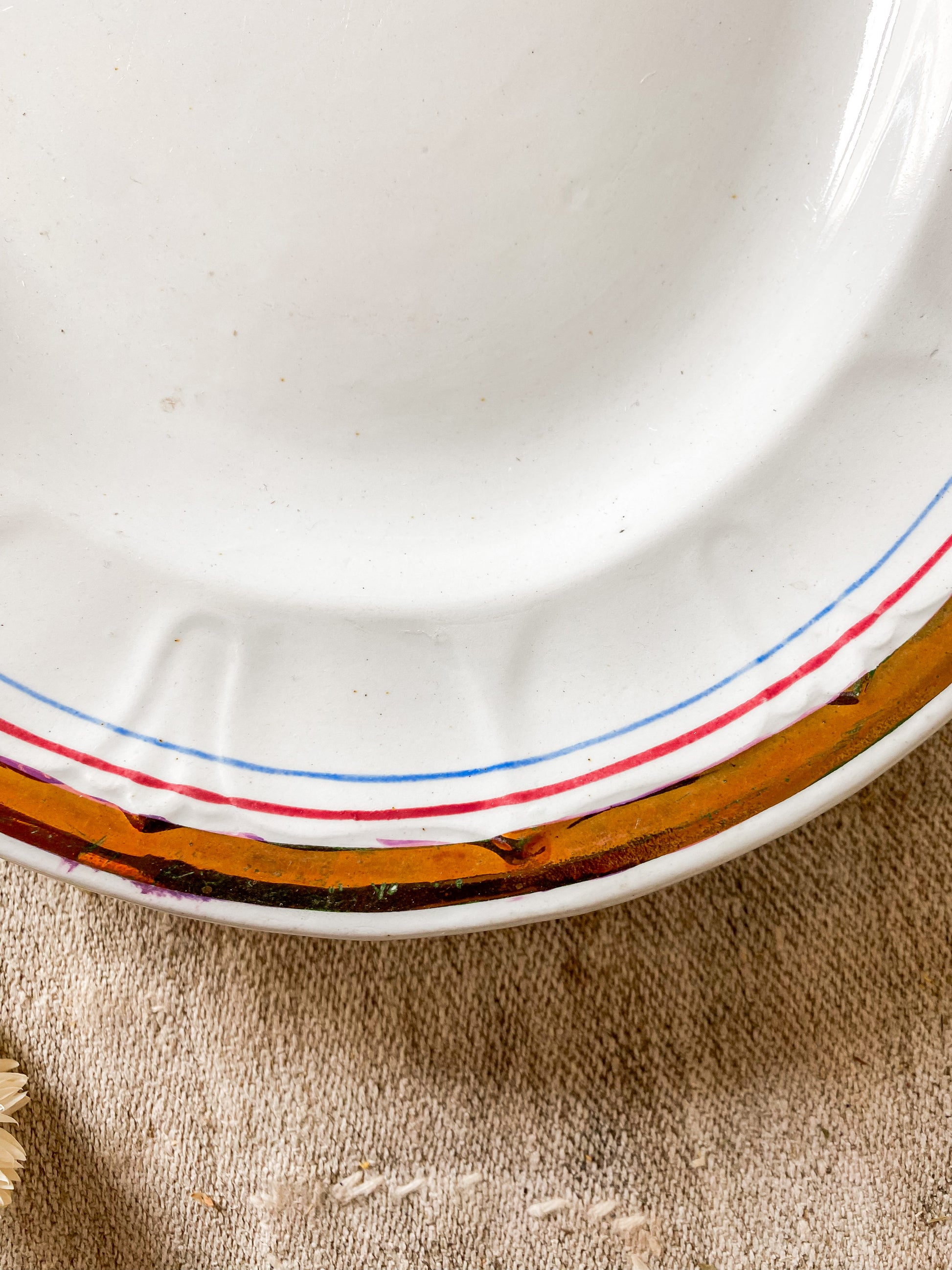 Antique White Ironstone Platter with Copper Luster Band and Pinstripes | Livesley Powell & Co, c1860