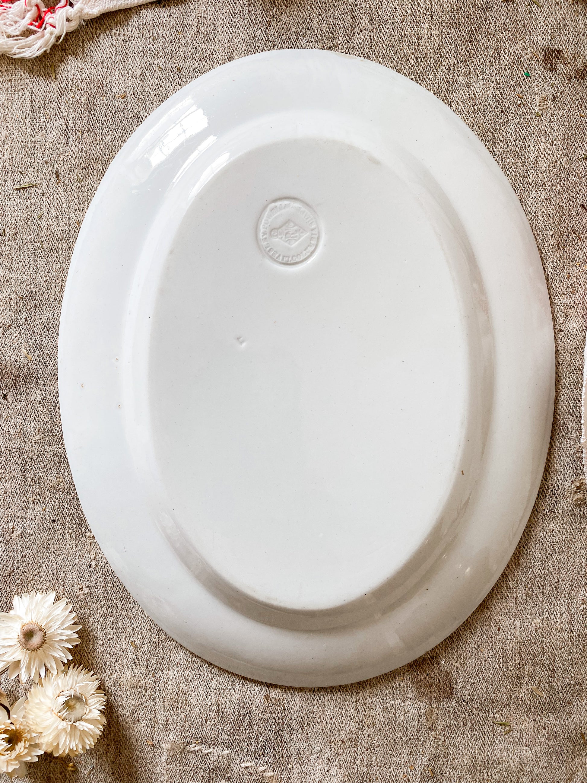 Antique ironstone platter in excellent condition with rare original luster trim and pinstripes.