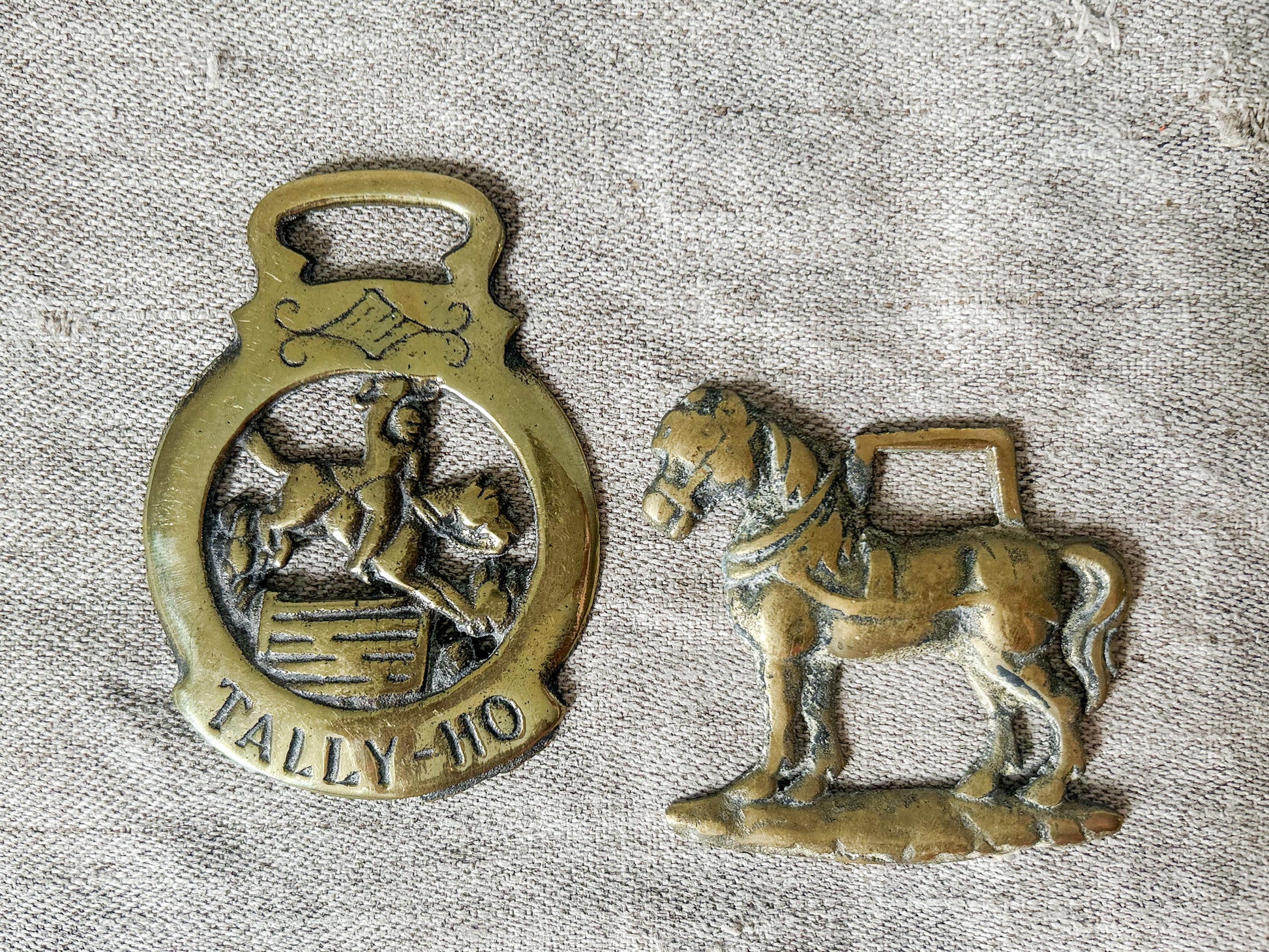 CHOICE Vintage Horse Brass Equestrian Medals - Tally-Ho & Horse