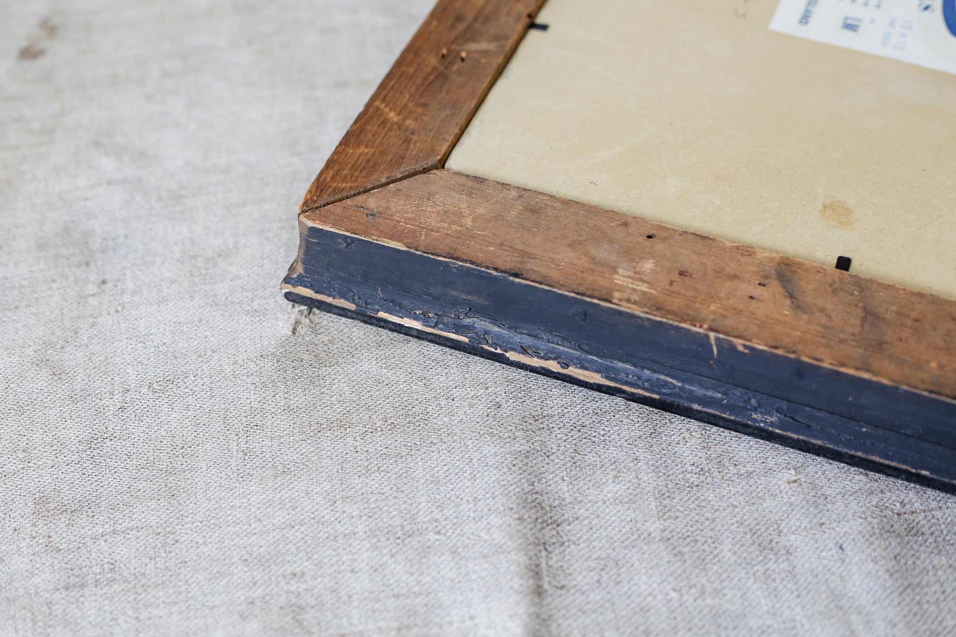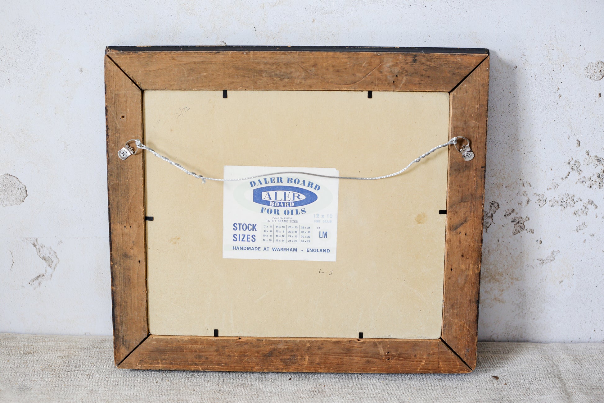 Framed in vintage wood and gilt frame with hanging wire. Small chip noted in bottom left corner of frame. Painting is signed "L72J" in bottom left. Sourced from England.