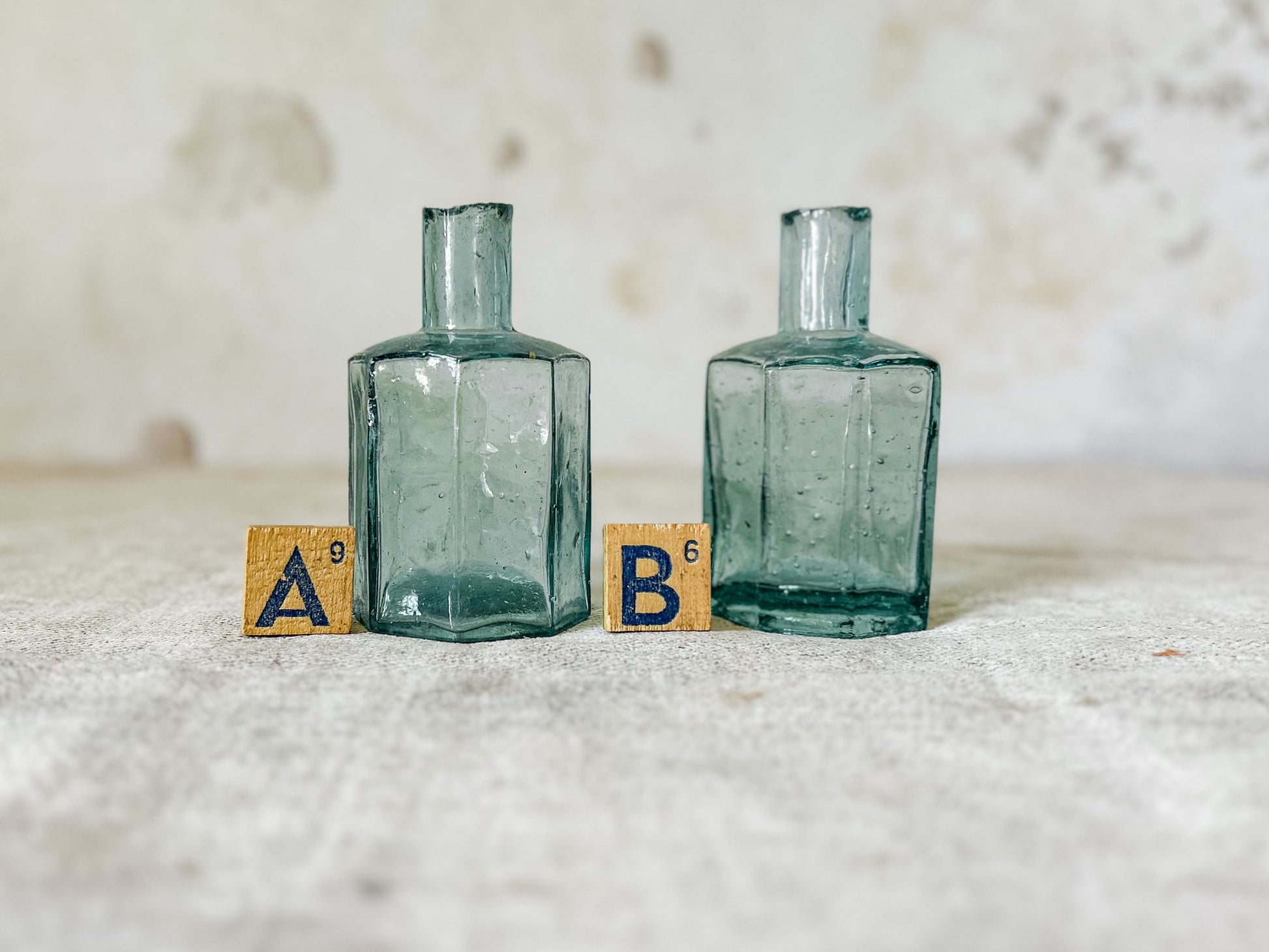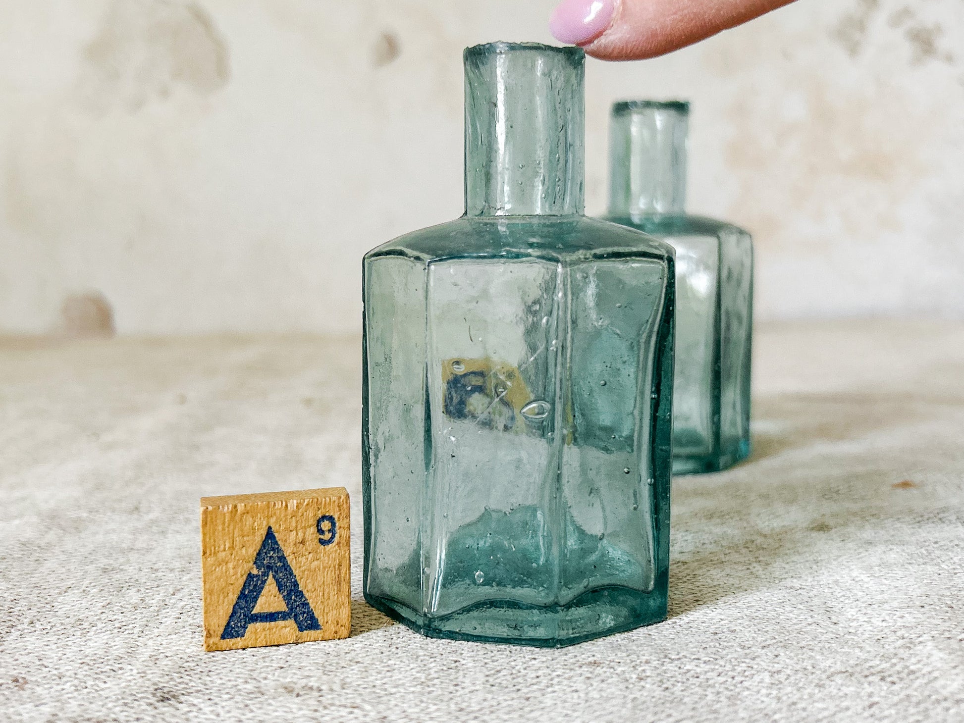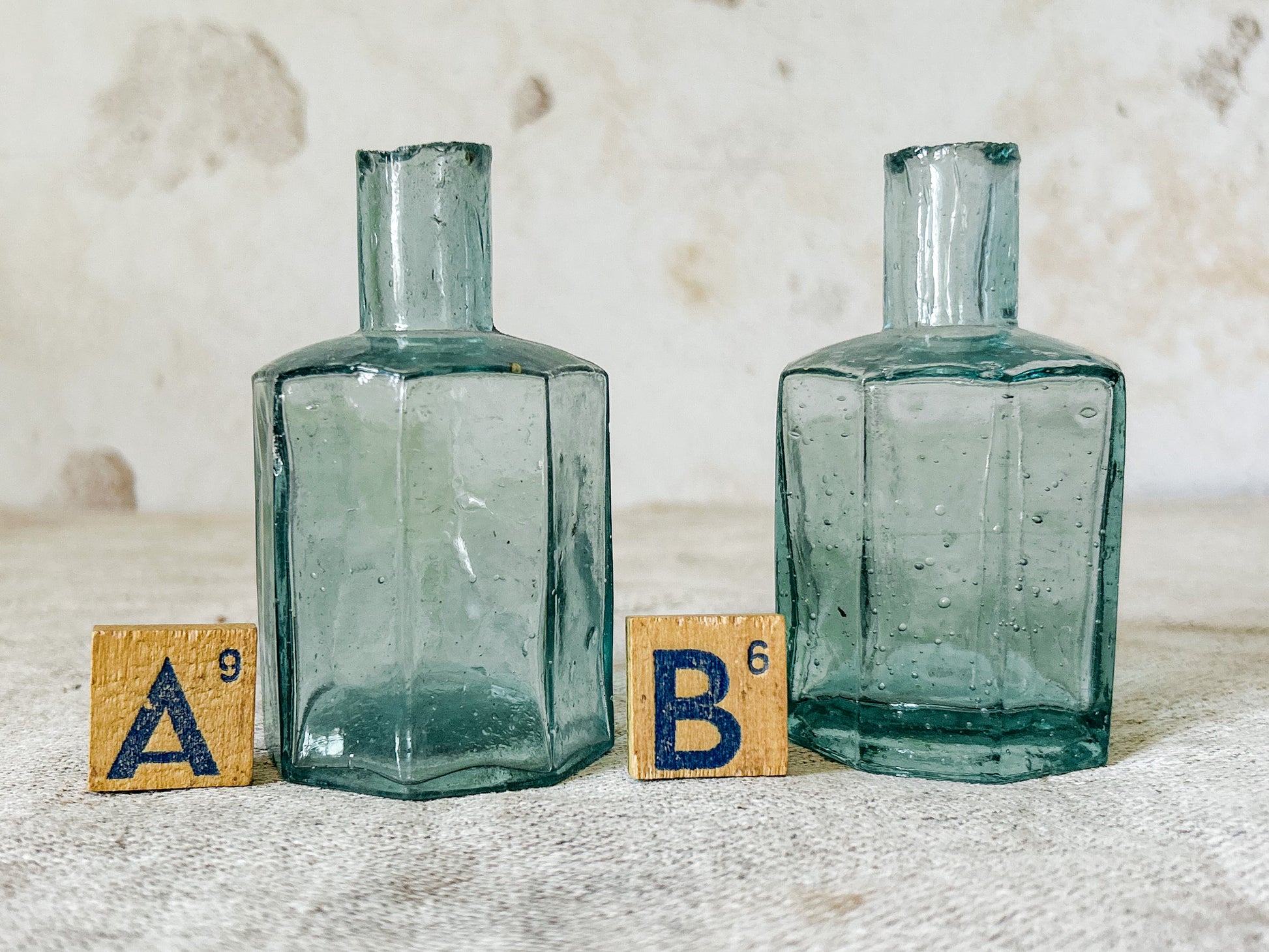 CHOICE Antique English Tall Octagonal Glass Inkwells