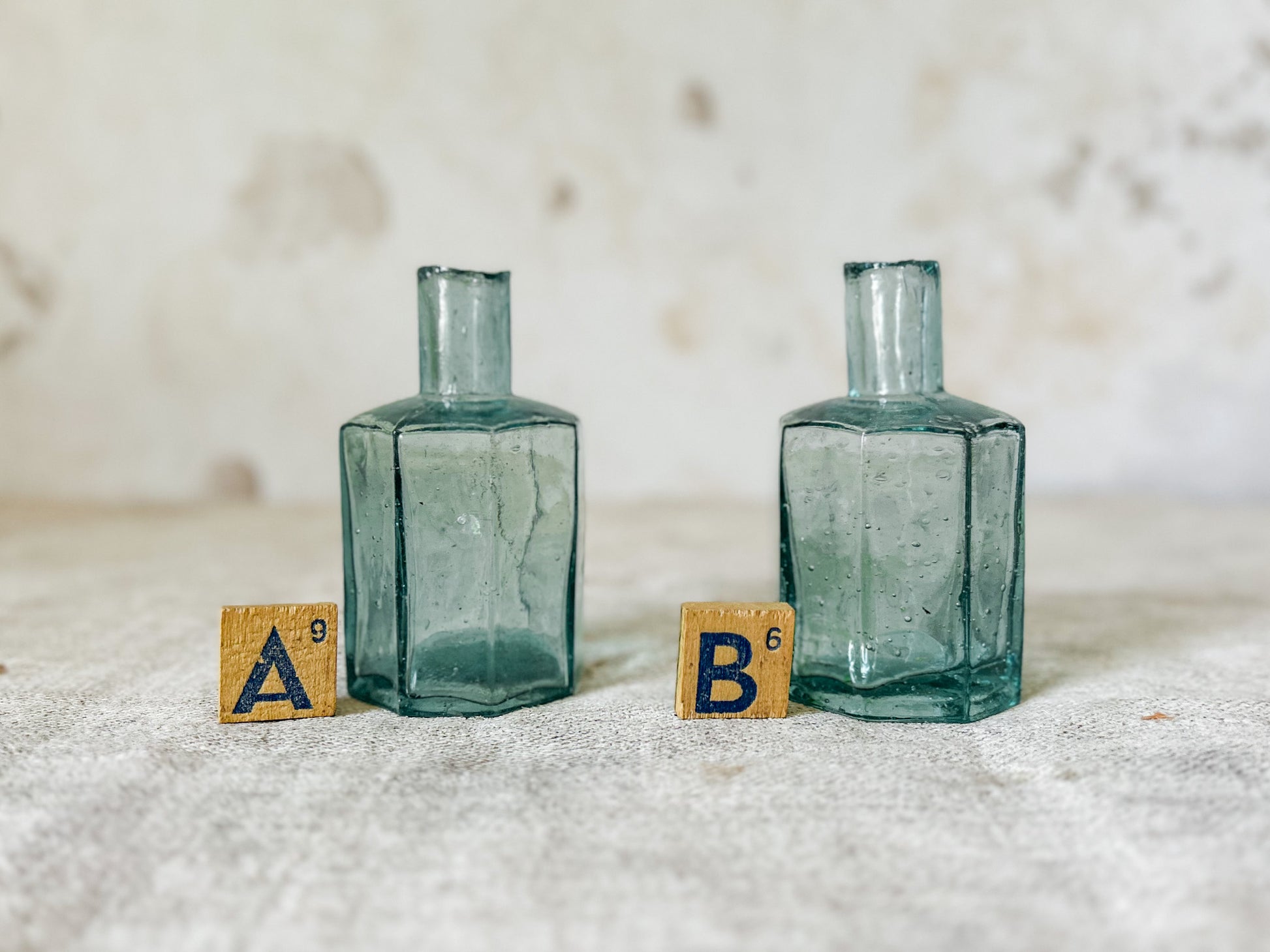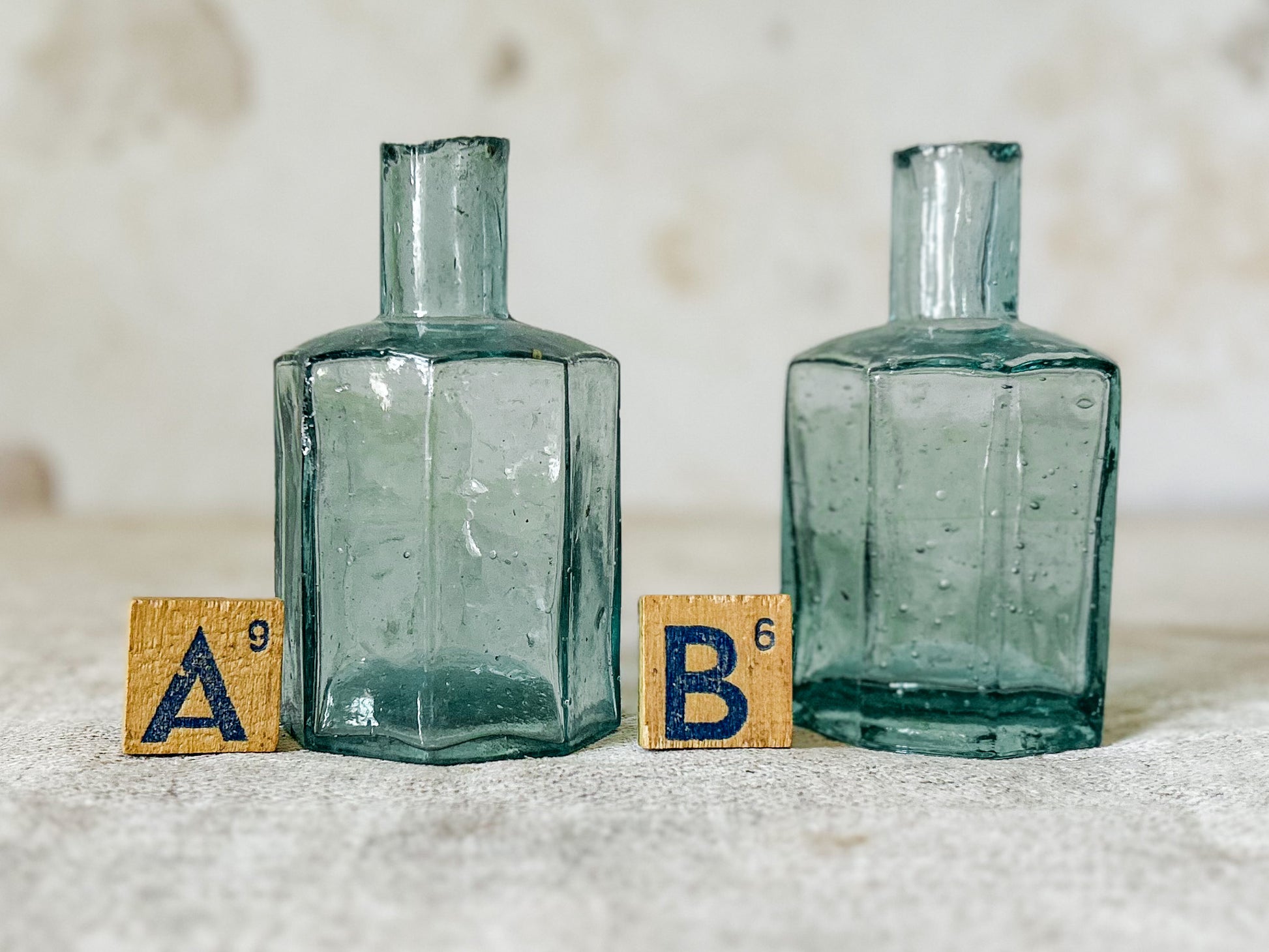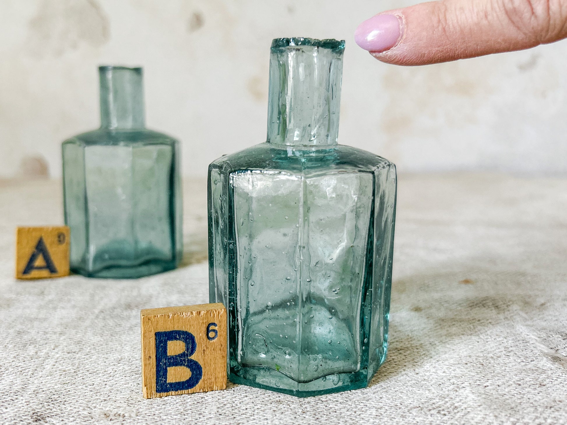 CHOICE Antique English Tall Octagonal Glass Inkwells