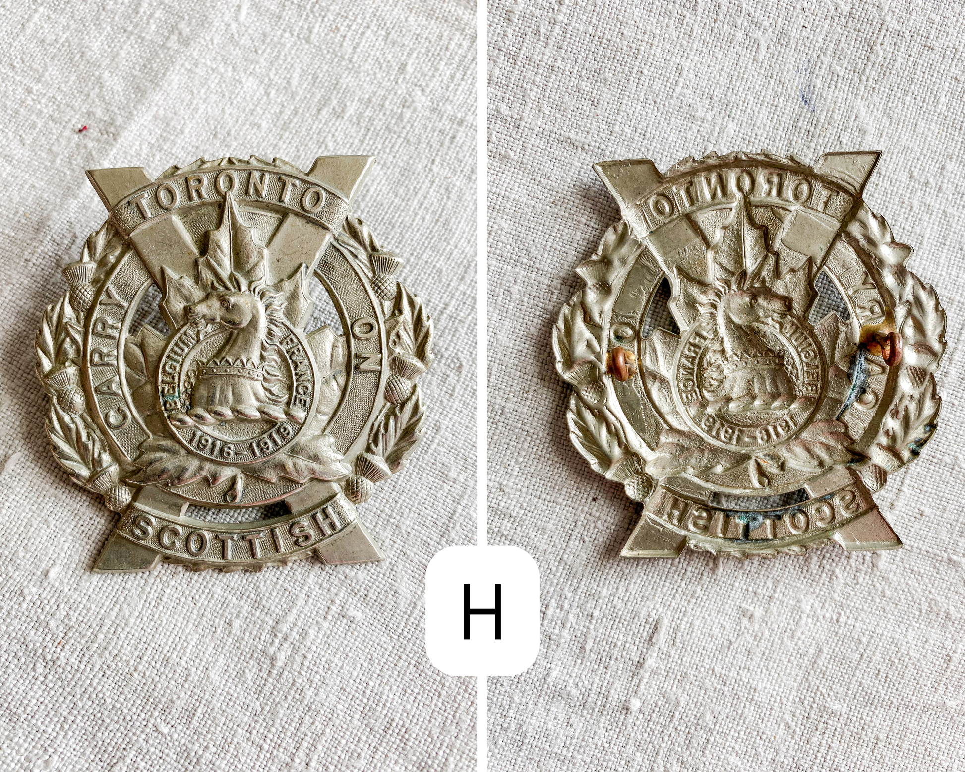 Available are a selection of unique Scottish military cap badges, ranging from the early 1900s through c1940. Each one represents a unique regiment with symbolism and titles. These can be displayed in shadow boxes or with a ribbon added to make a unique ornament or knob hanger.
