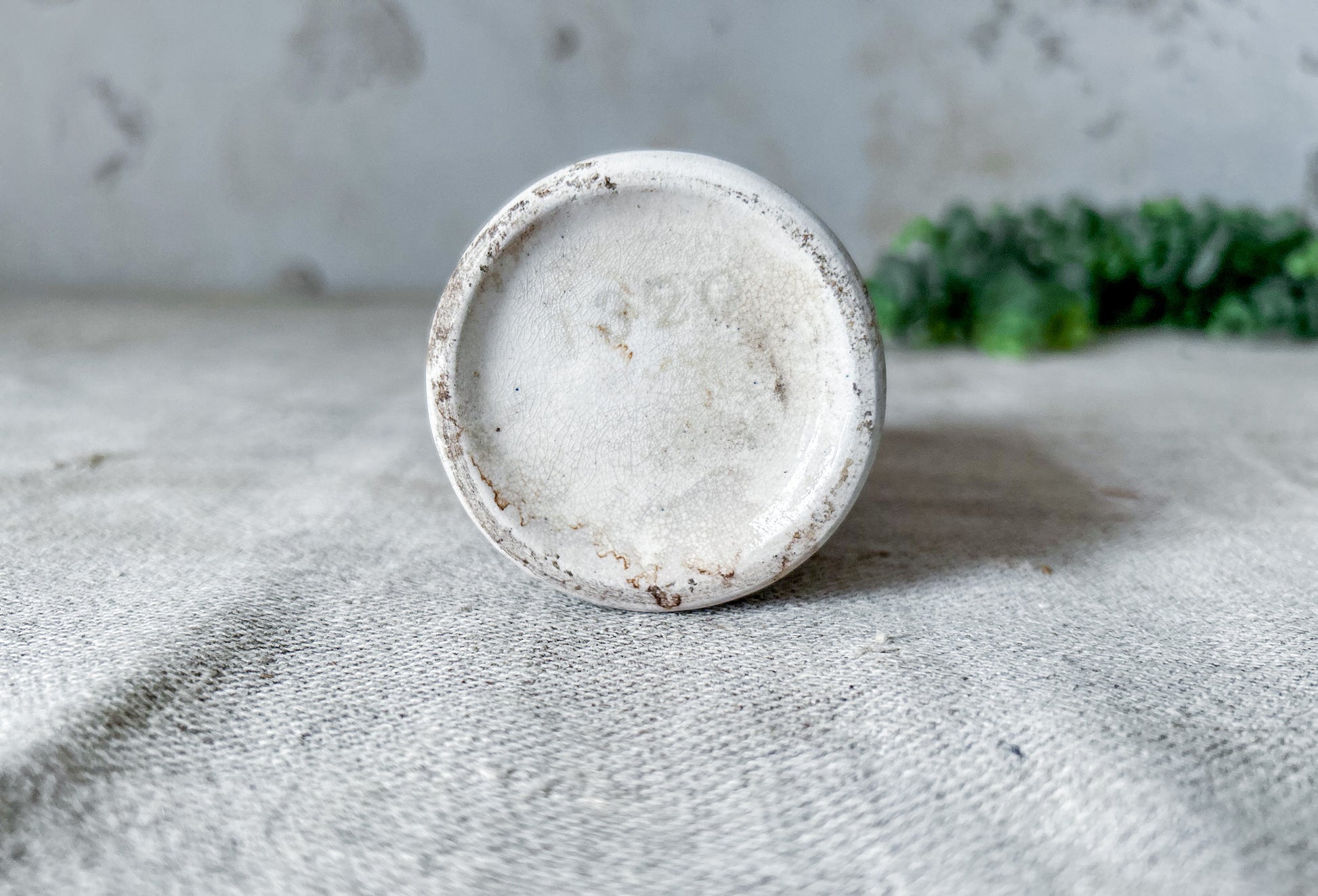 Moderate staining and crazing throughout and light wear. This piece was imported from England, where it was salvaged from a Victorian dump site.