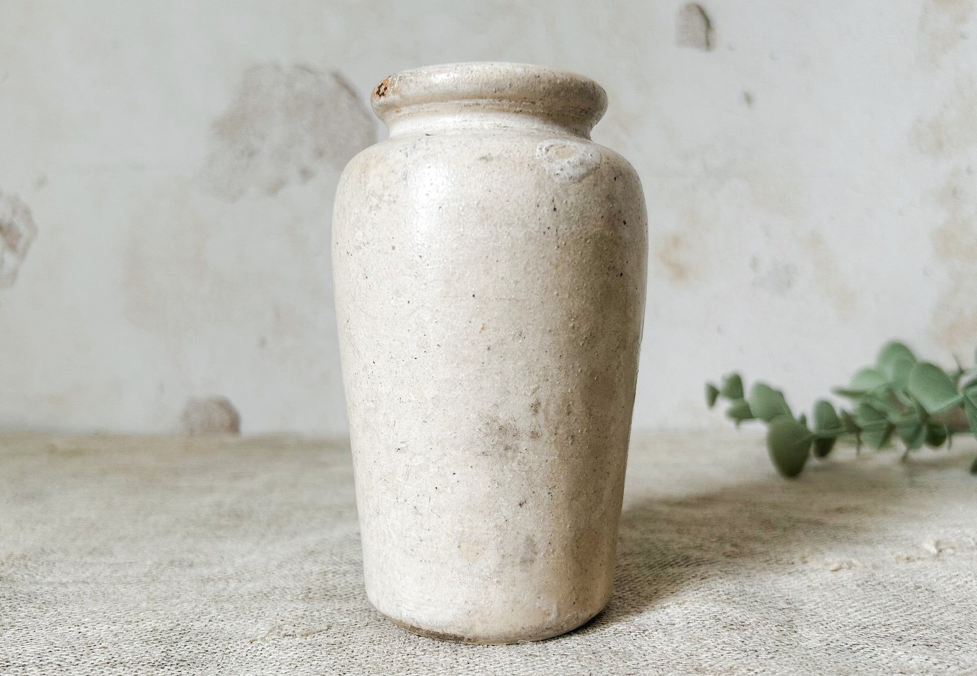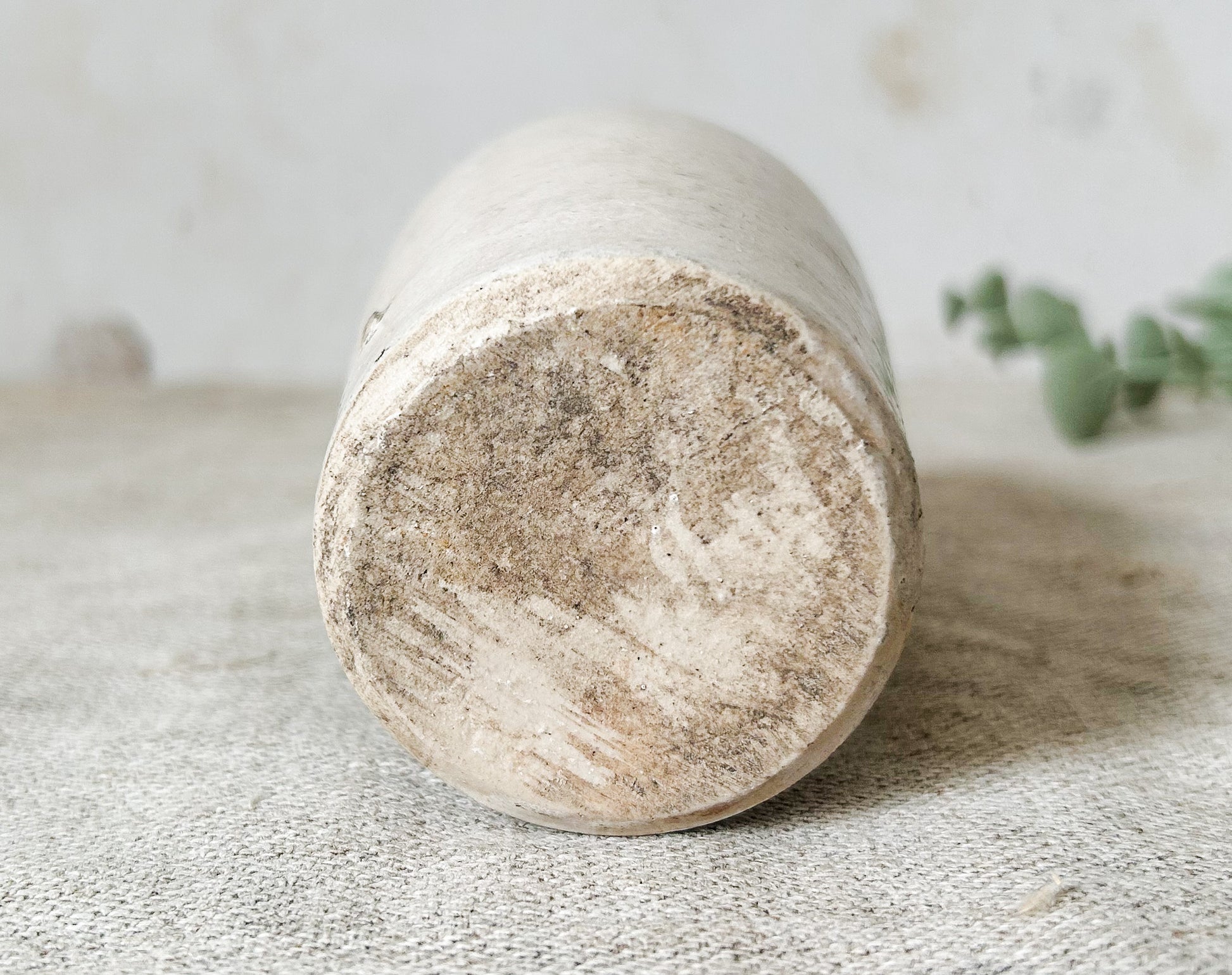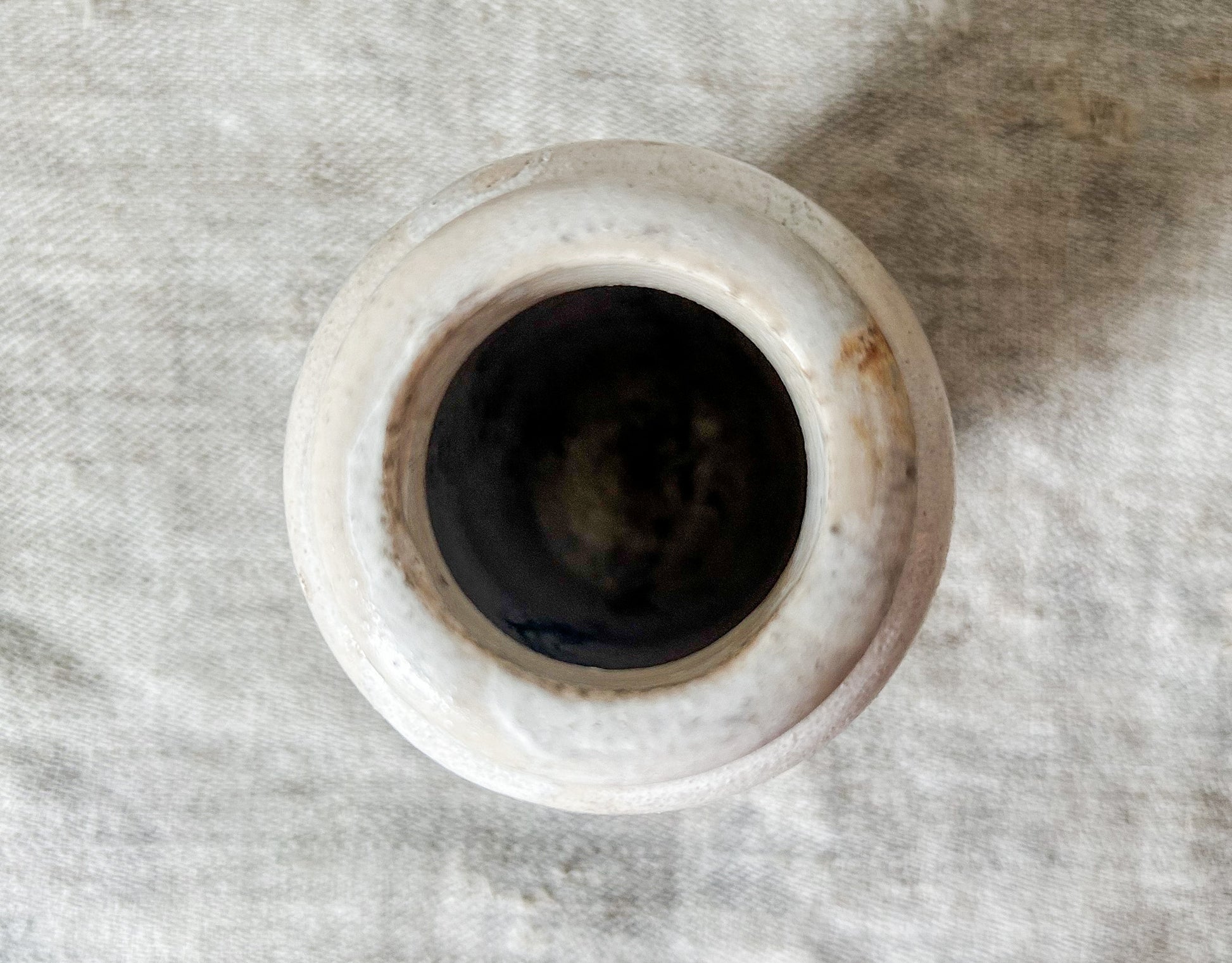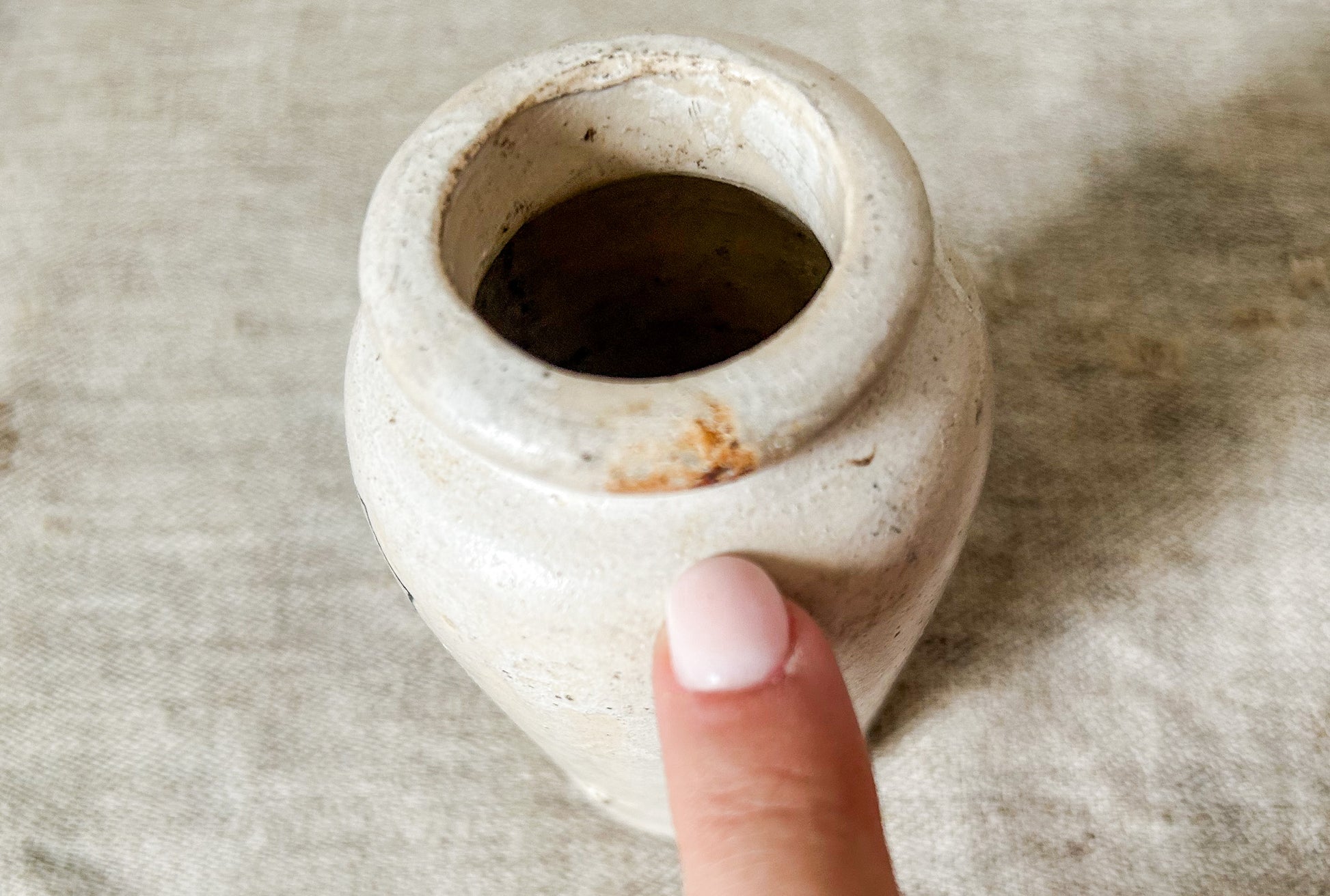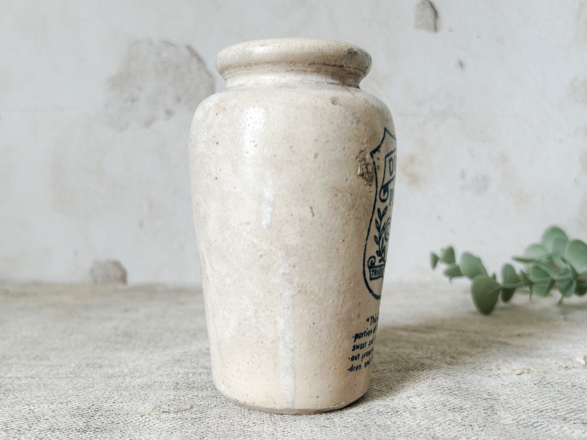 Dunragit is a town in southwest Scotland and was home to creameries in the early 20th century. The pot is in good antique condition, with small discolorations and glaze scuffs noted in the photo.