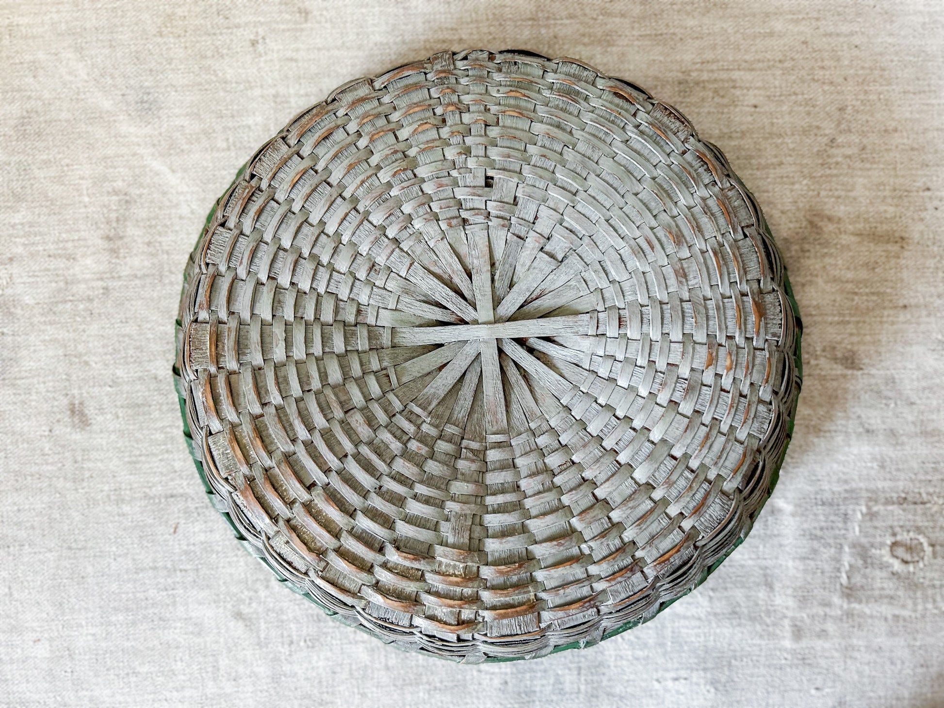 Vintage Split Wood Woven Green Basket with Handles