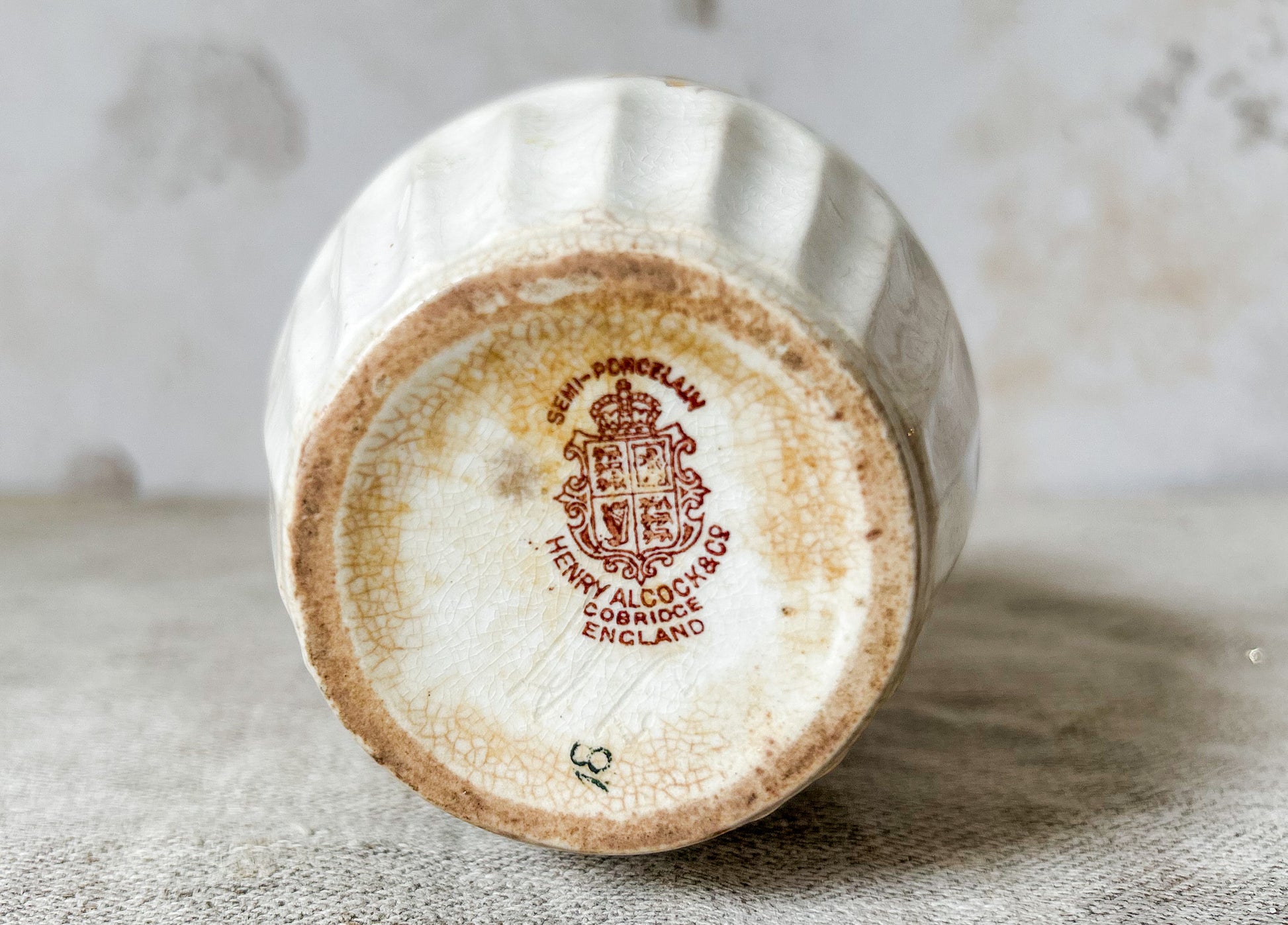 Bottom is stamped "Henry Alcock & Co, Cobridge, England." Estimate date of production c1891. Perfect size for small floral bouquets or utensil storage.